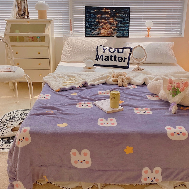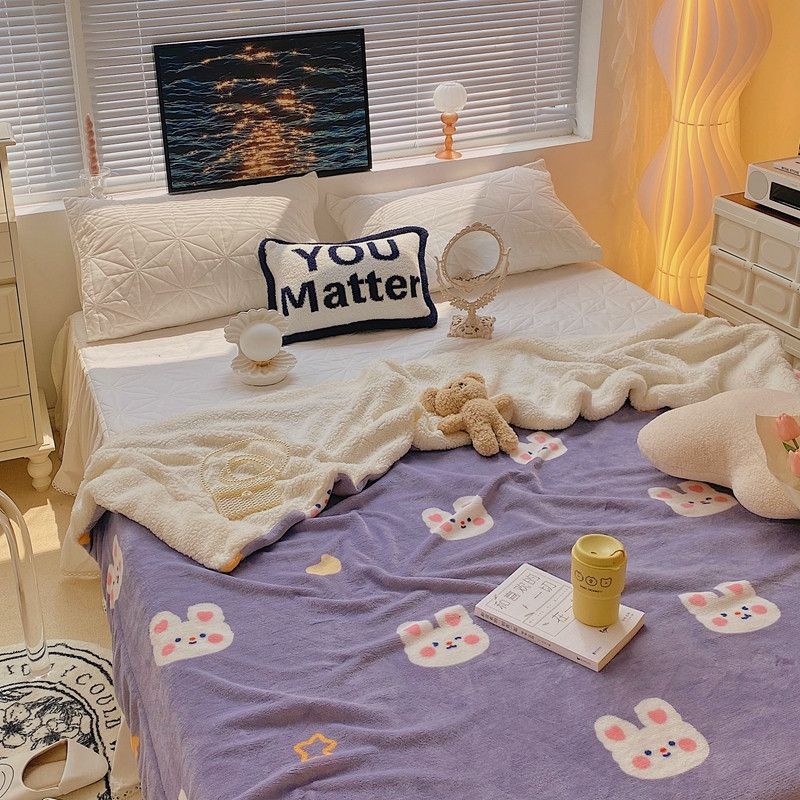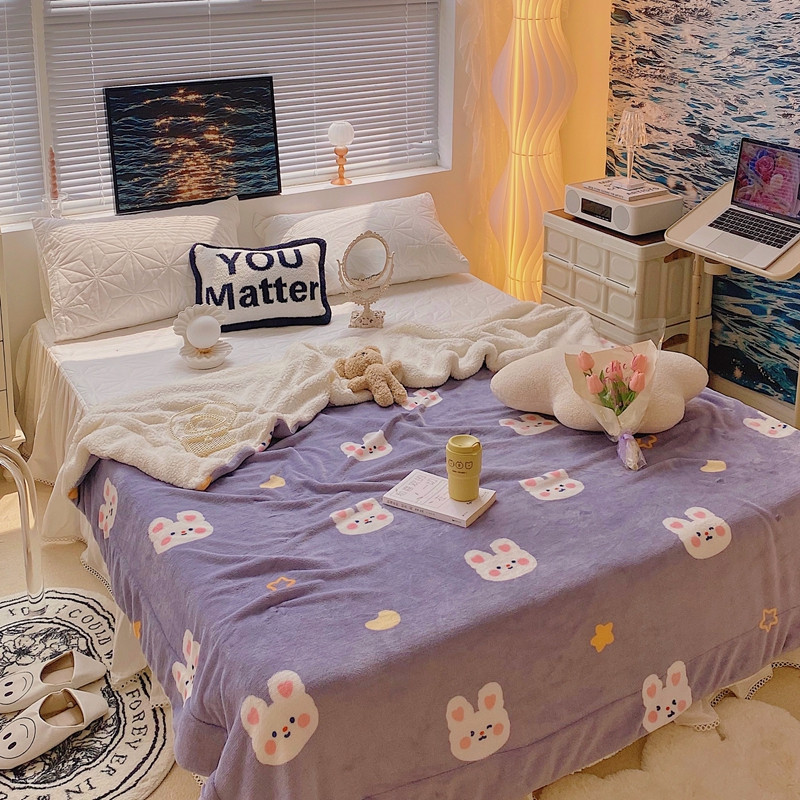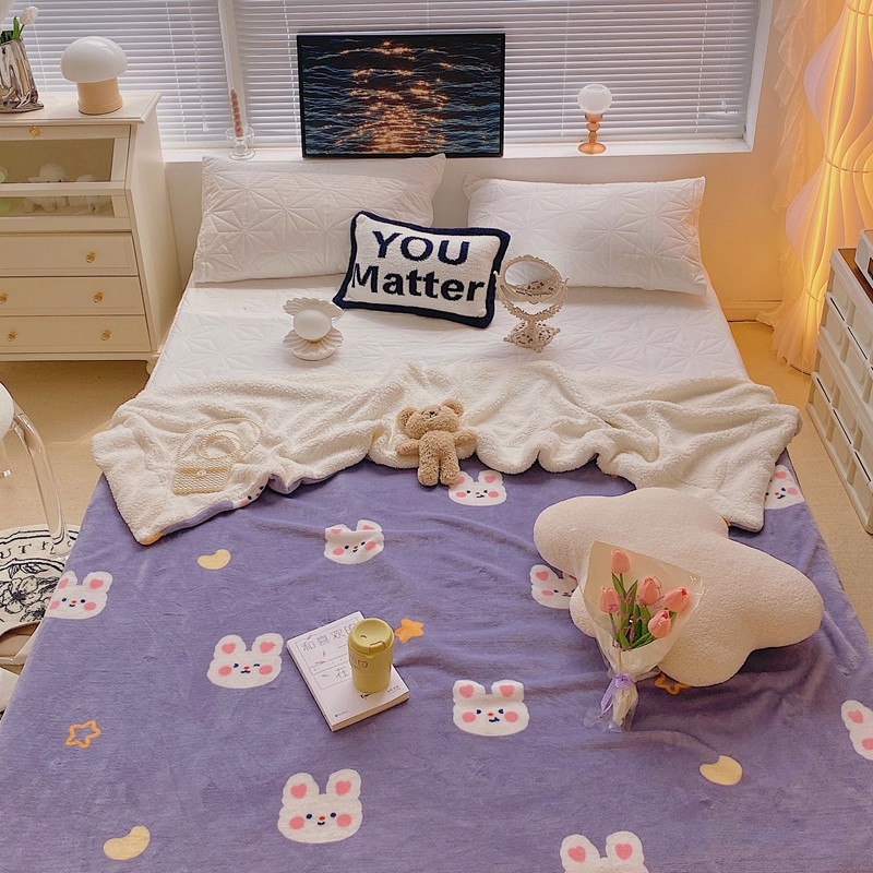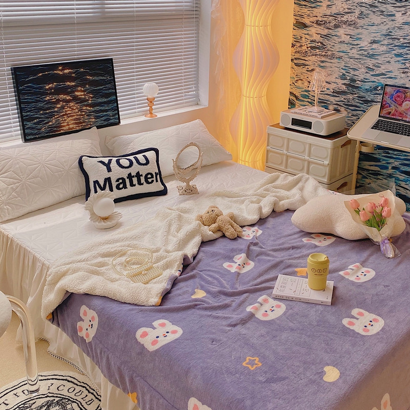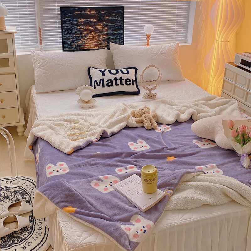商品名称:顾里 2021新款ins网红少女心暖肤羊羔绒毯实拍图月亮小兔