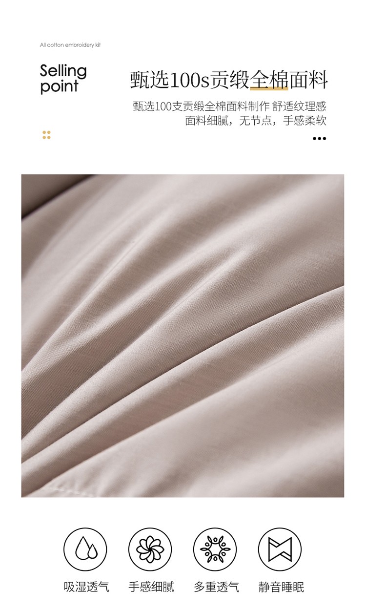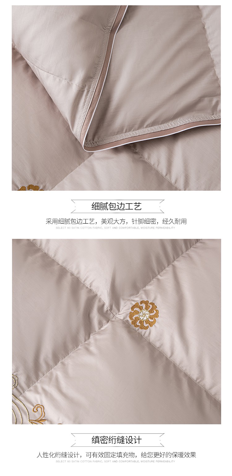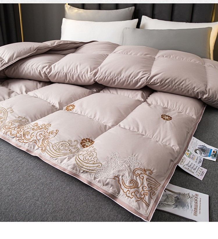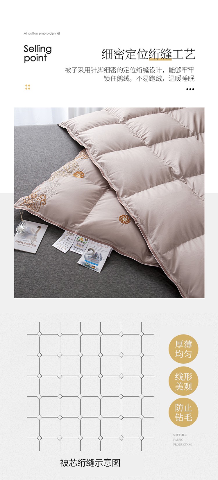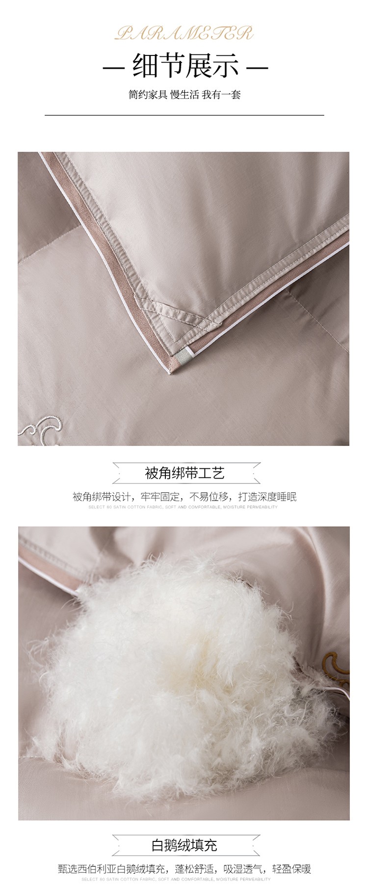 (总)俏企鹅 2025新款绣花款-100s贡缎全棉白鹅绒被,浅灰,粉咖,白色