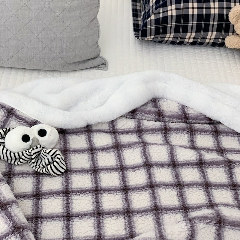 商品名称:昔可家纺 2021新款羊羔泰迪绒印花毛毯-第二组图小香风格子
