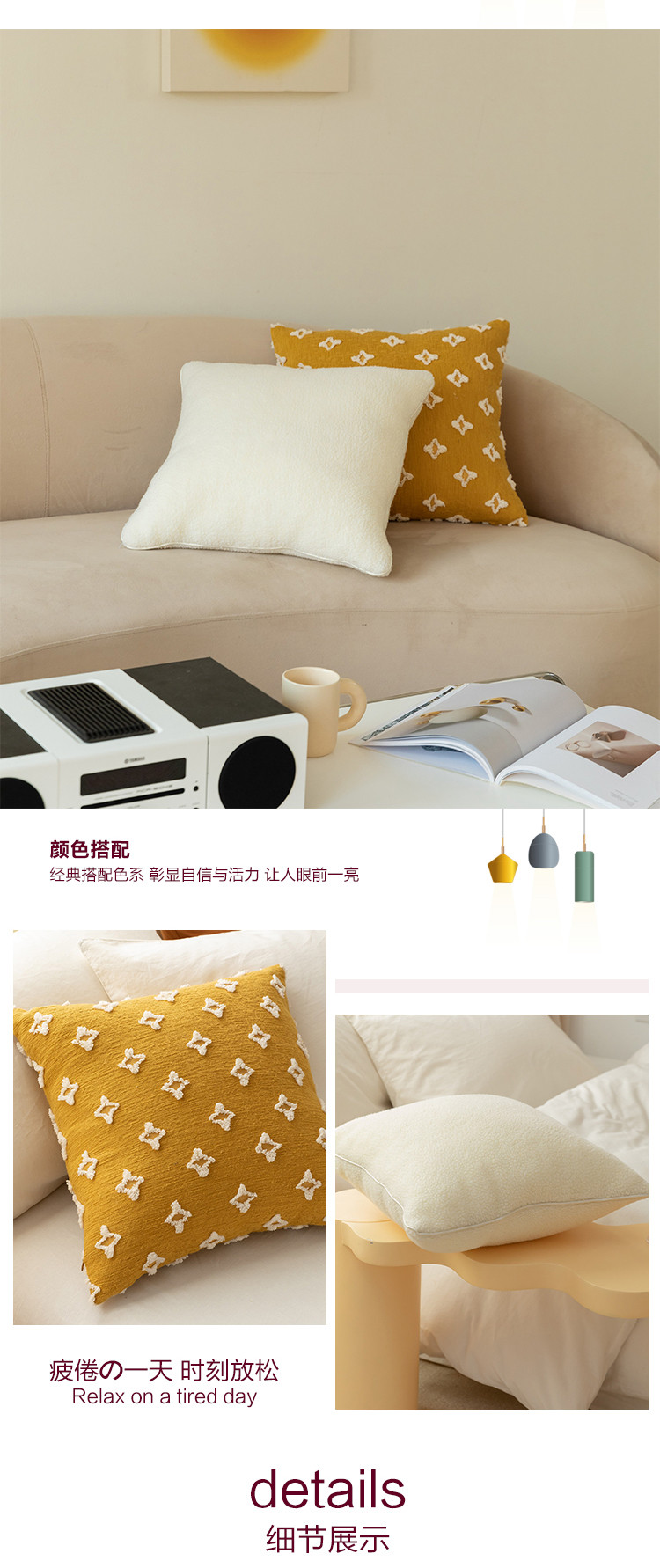 (总)美茉家居 2025新款云朵绒曲边方枕抱枕,草墨灰,枫叶红,芥末黄,米脂白,若竹青