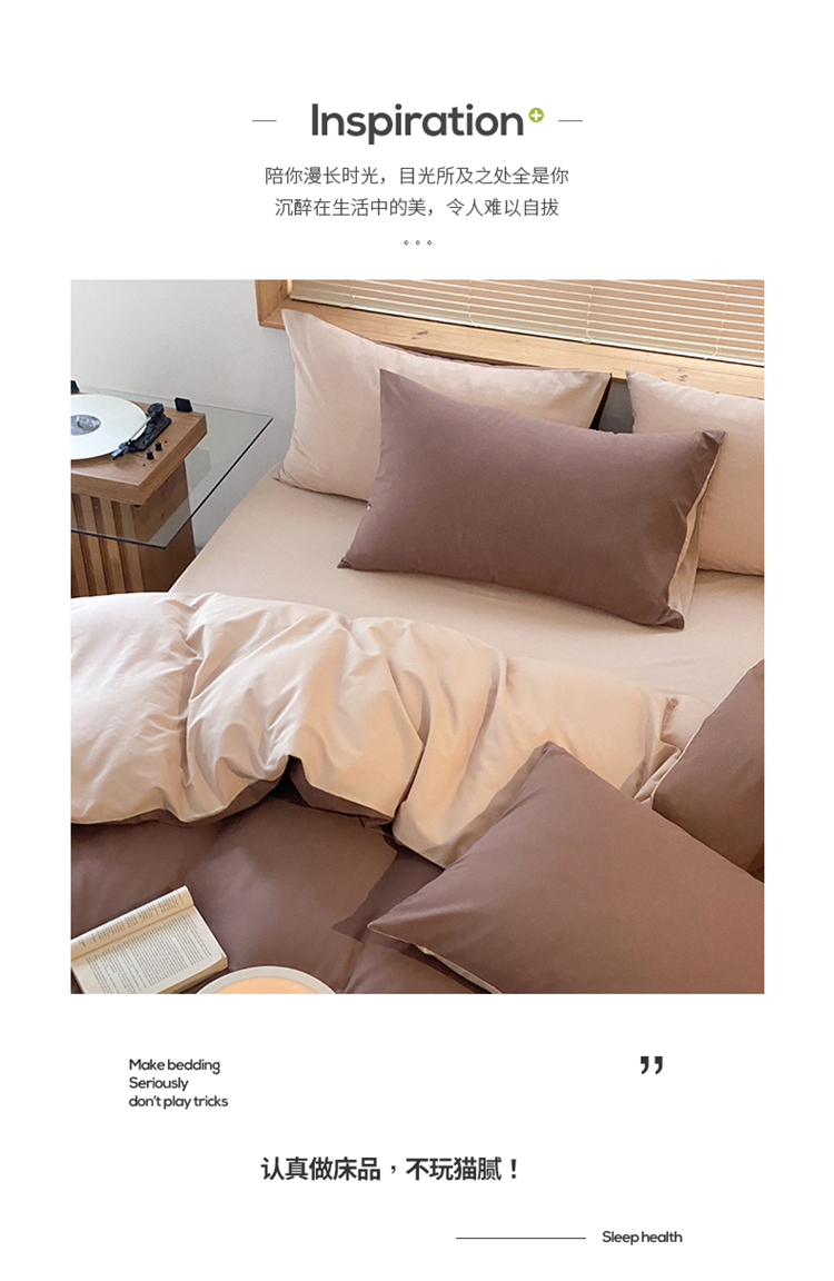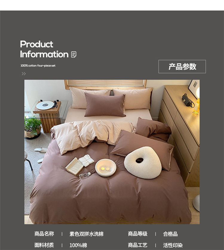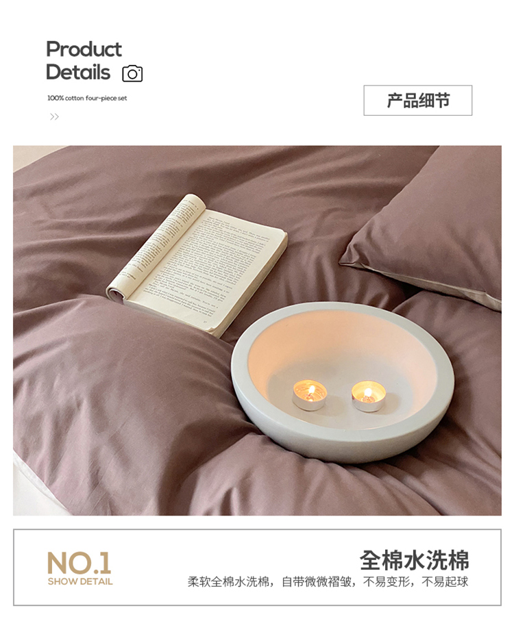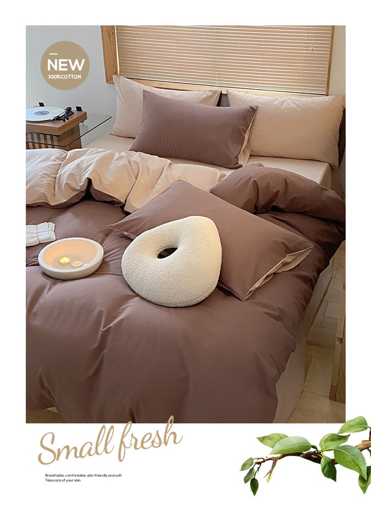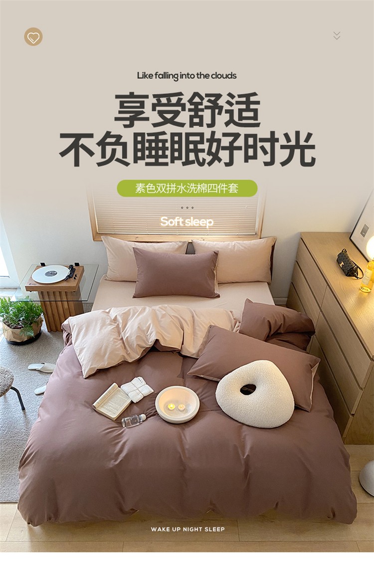当前位置: 91家纺网 > 商品网购 > 床品套件 > 四件套 > 水洗棉四件套 > 窝米 2022春季新品素色双拼水洗棉系列四件套 欧蕾咖啡双拼
