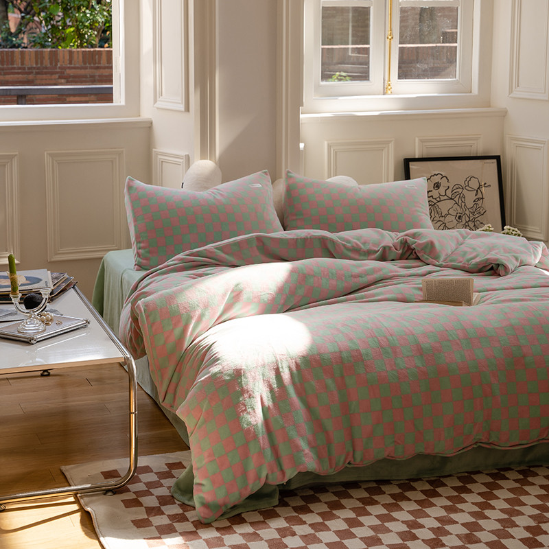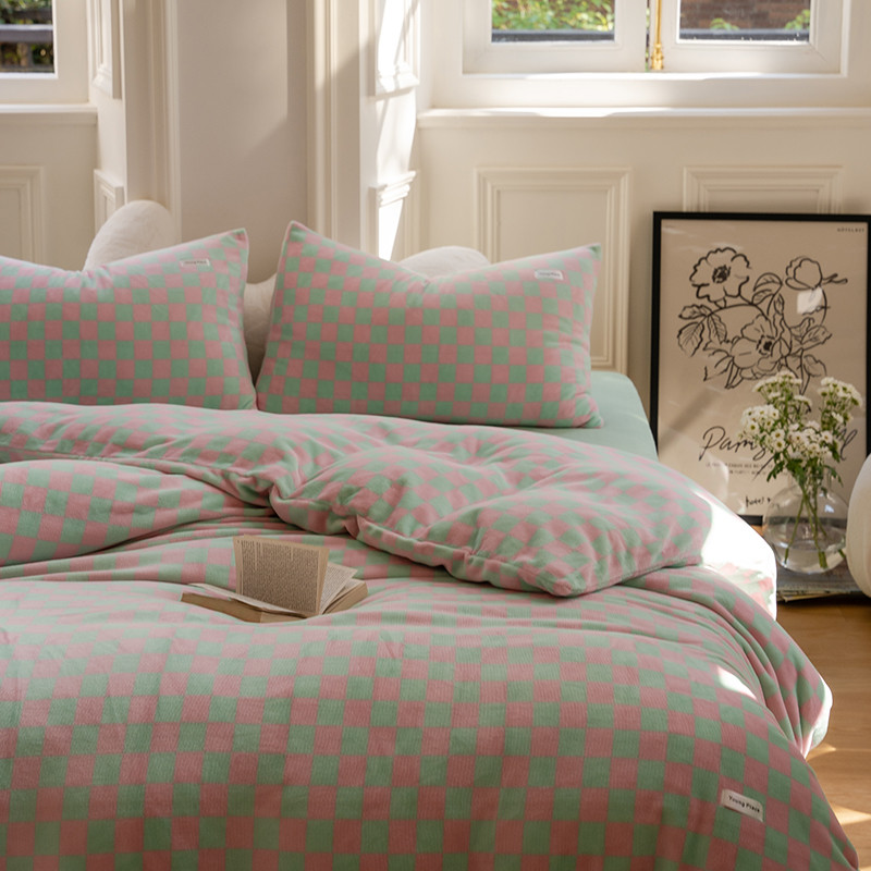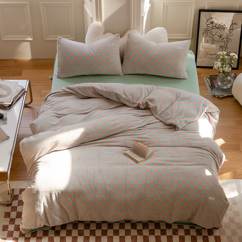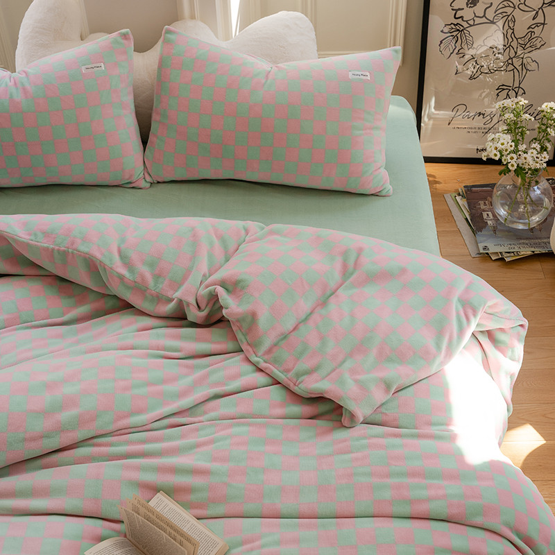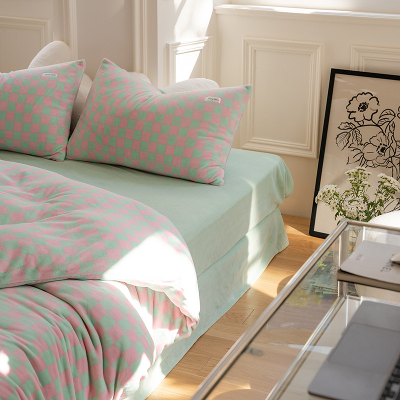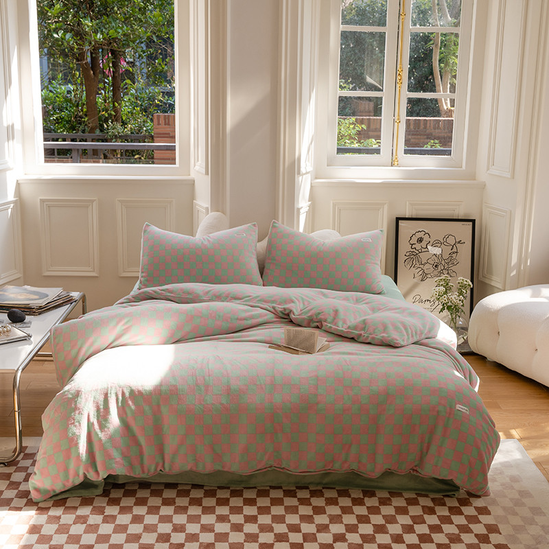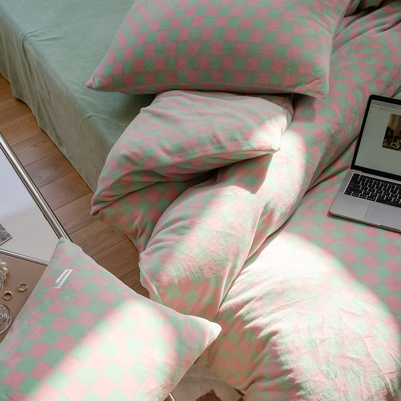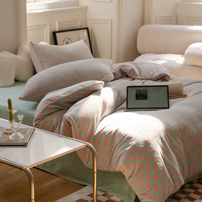 洋铭区 2022新款双色棋盘格四件套 庄园粉格