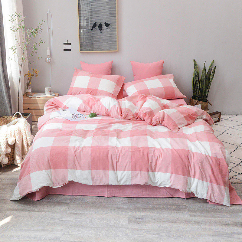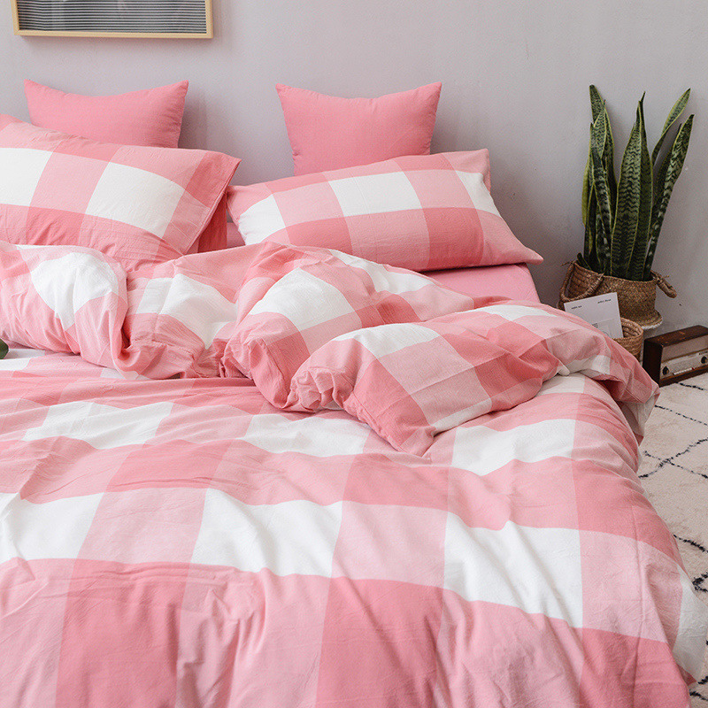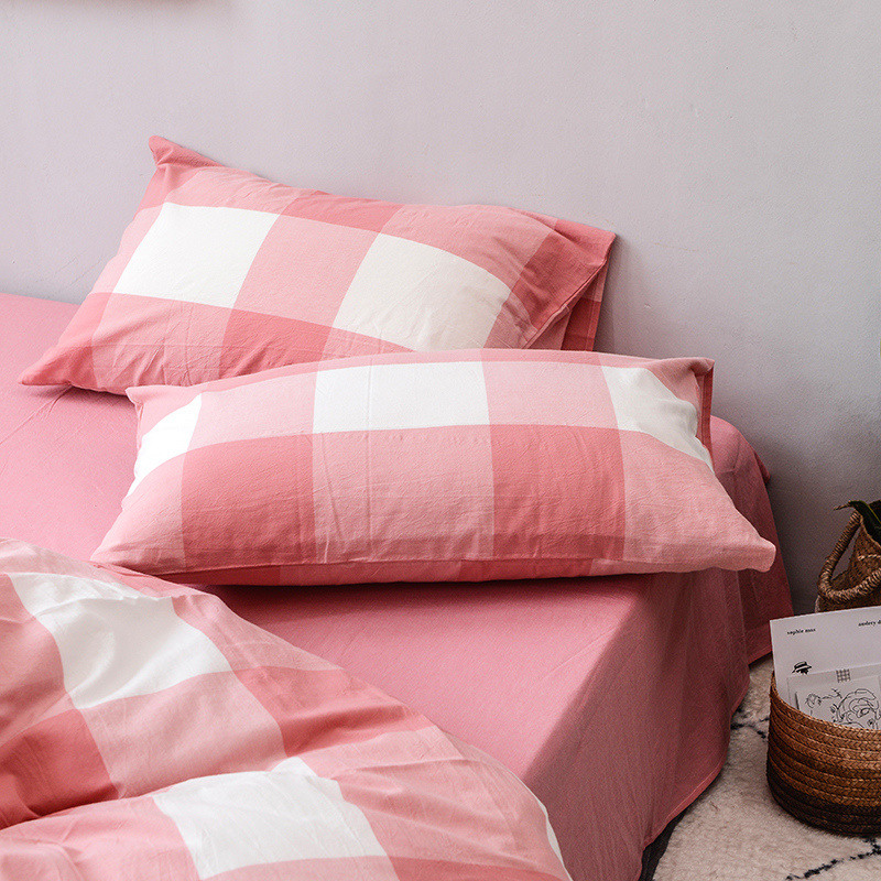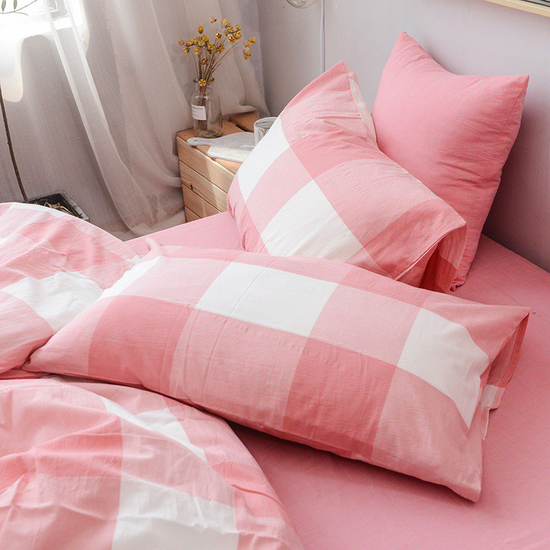 当前位置: 91家纺网 > 商品网购 > 床品套件 > 四件套 > 水洗棉四件套 > 柠萌家居 2022新款无印良品全棉色织水洗棉四件套 粉红大格