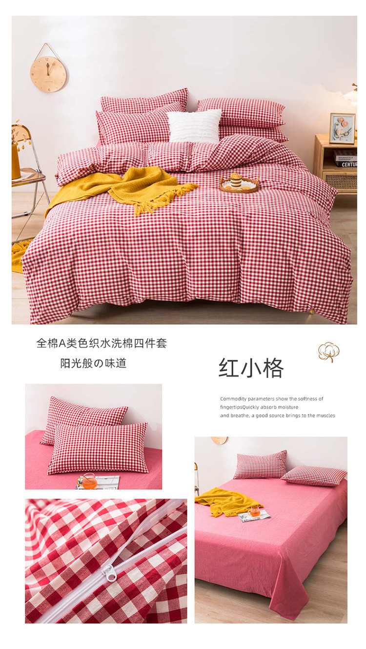 (总)柠萌家居 2026新款纯棉全棉A类色织水洗棉四件套(可定制尺寸),诺卡-咖,倾城-粉,倾城-蓝,倾城-绿,苏格兰-红,苏格兰-咖,苏格兰-卡其,组合