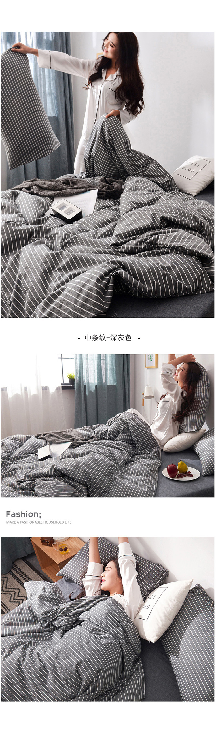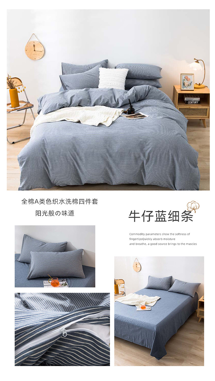 (总)柠萌家居 2026新款色织水洗棉四件套单被套,粉极细条,粉紫条,黄咖条,灰极细条,蓝咖条,绿极细条,绿紫条,米极细条,驼红条