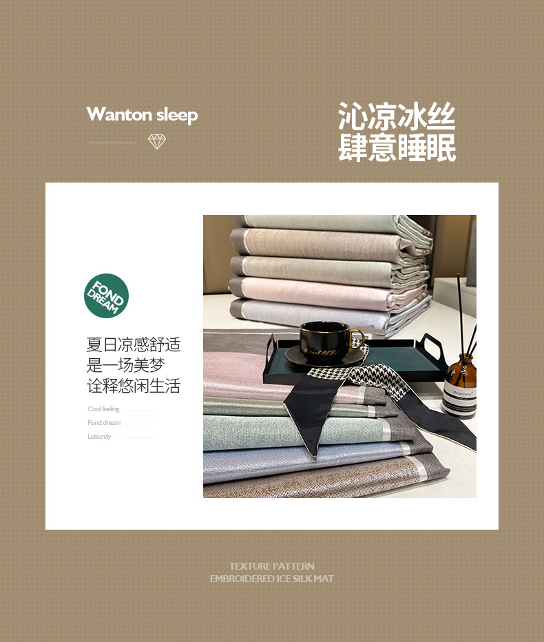 (总)懒猫 2022新款600D肌理纹绣花凉席,杰米-粉,杰米-灰,杰米-咖,杰米-蓝,杰米-绿