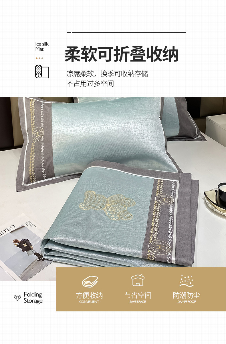 懒猫 2022新款600D肌理纹绣花凉席 杰米-绿