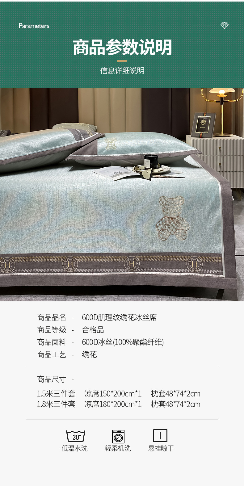 商品名称:懒猫 2022新款600D肌理纹绣花凉席 杰米-绿
