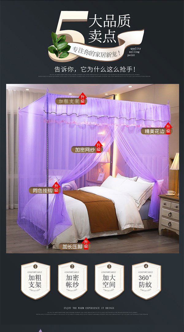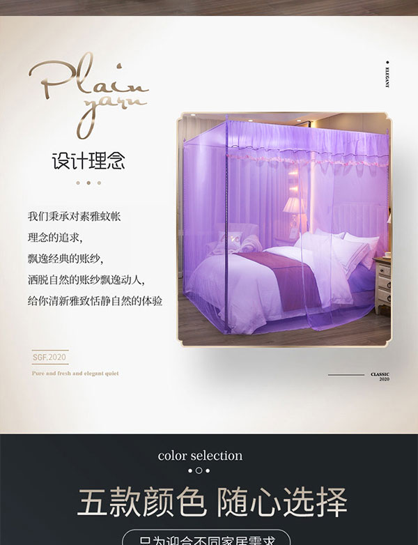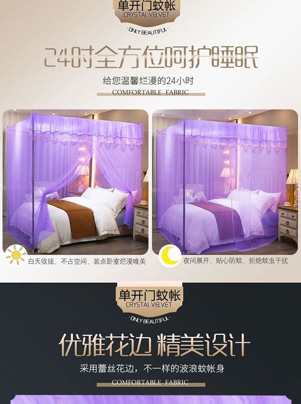 当前位置: 91家纺网 > 商品网购 > 床上用品 > 蚊帐 > 坐床式蚊帐 > 初心 2025新款单开门蚊帐舒夏紫色