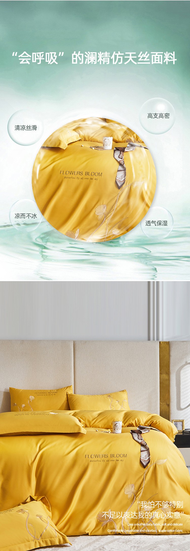 商品名称:凡客 2022新款水洗真丝绣花花影系列 花影-姜黄色