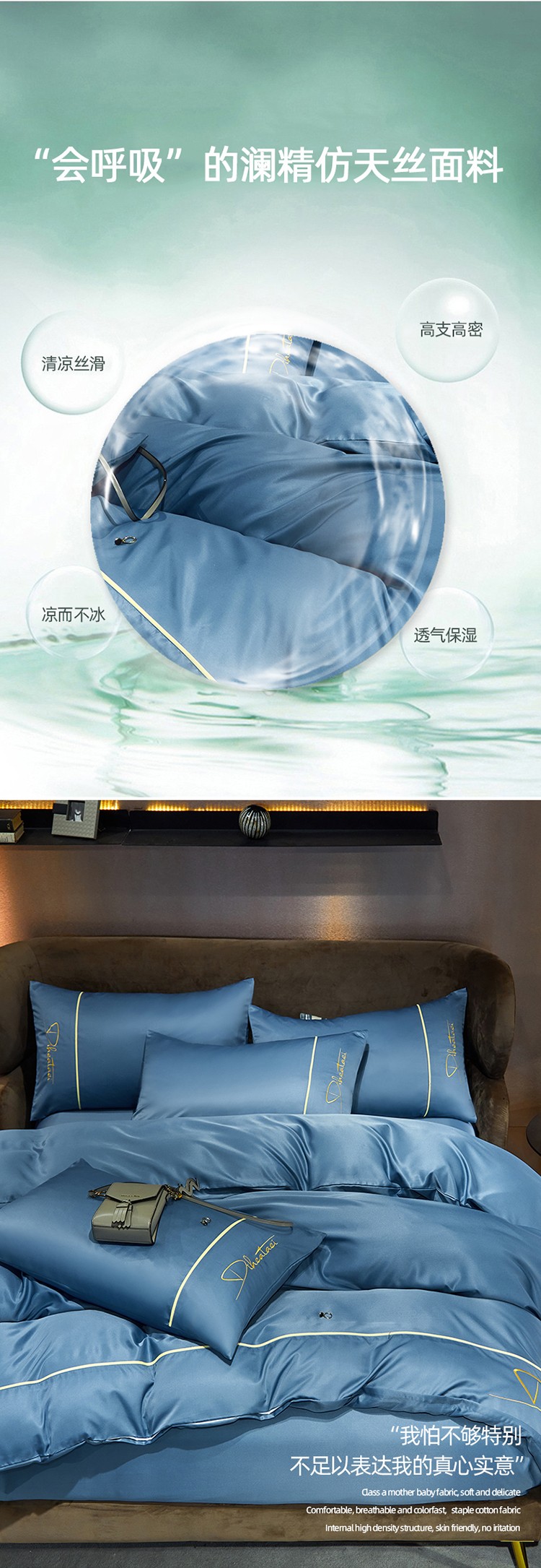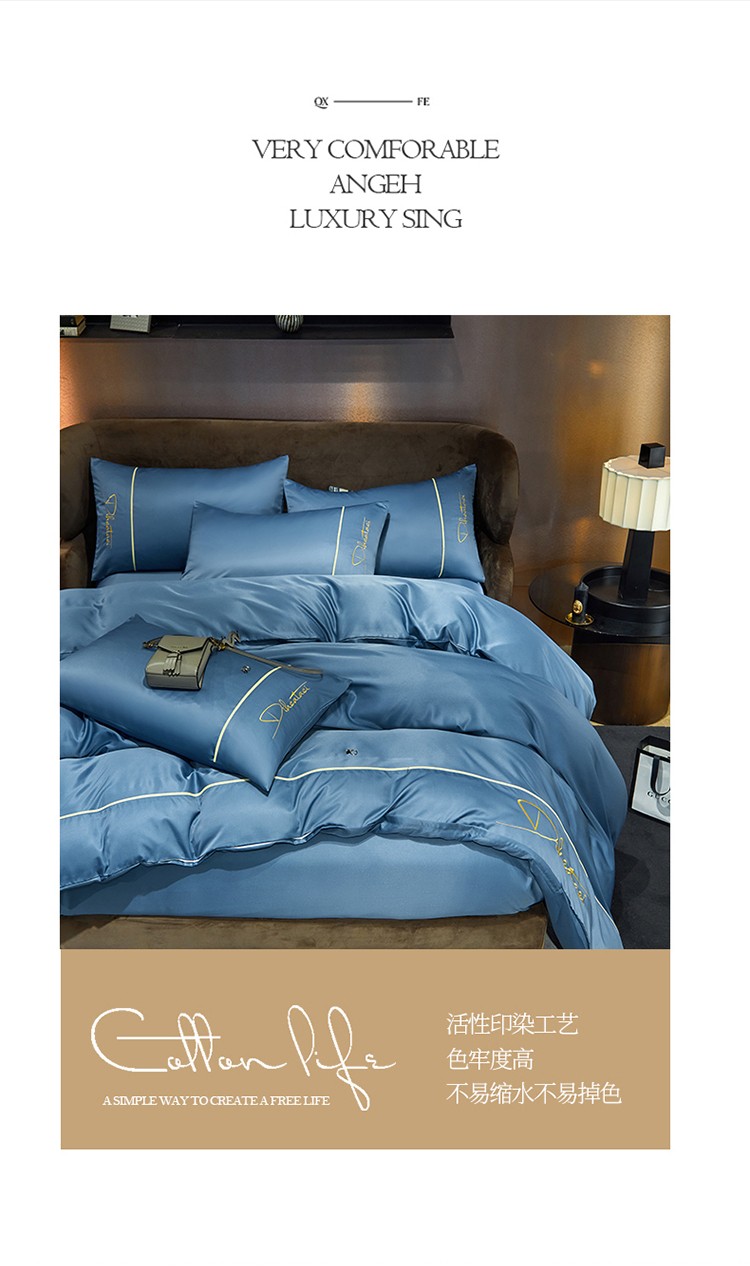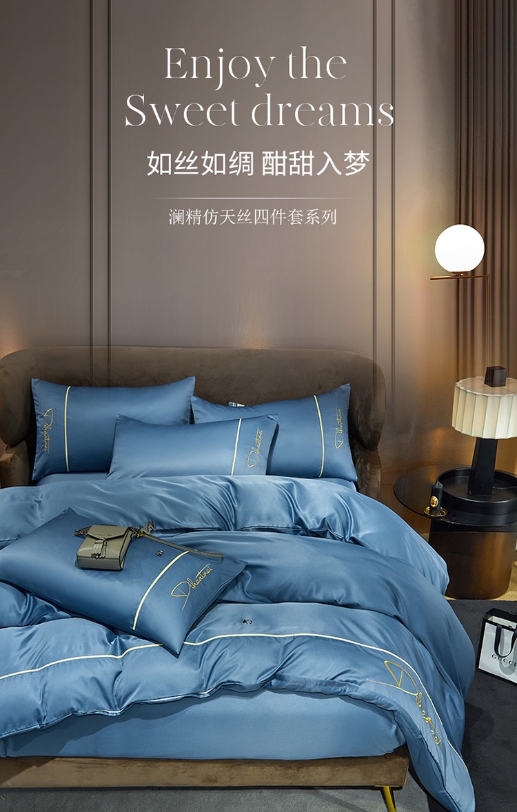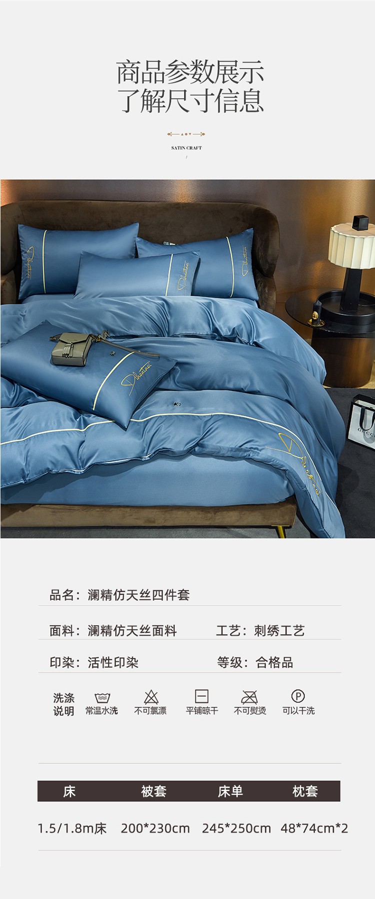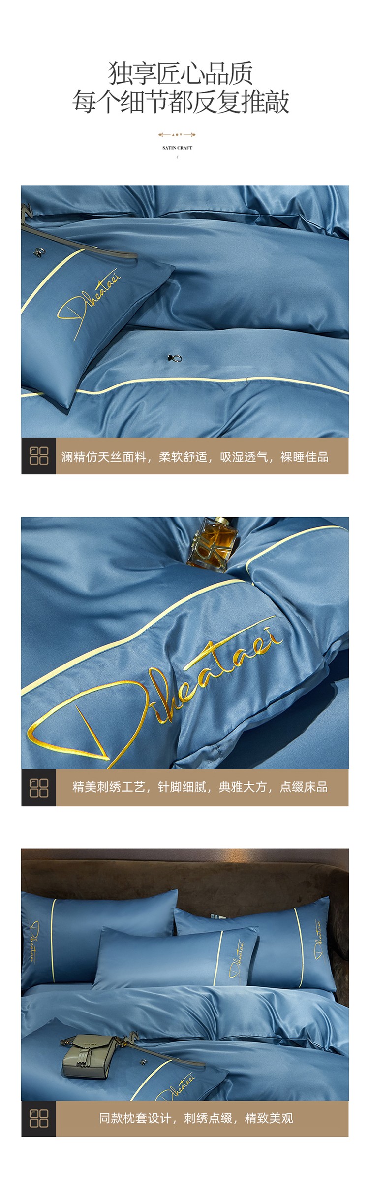 (总)凡客家居 2024新款高克重牛奶绒绣花拼角四件套,海洋蓝,奶油咖,深卡其,樱花粉