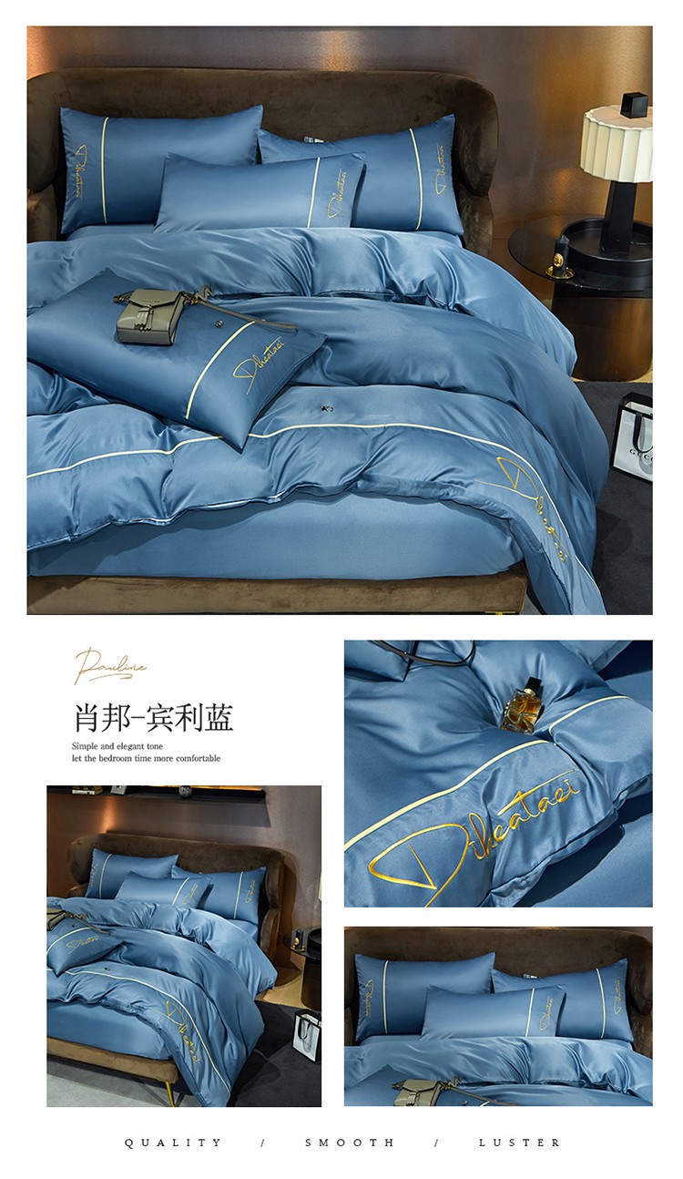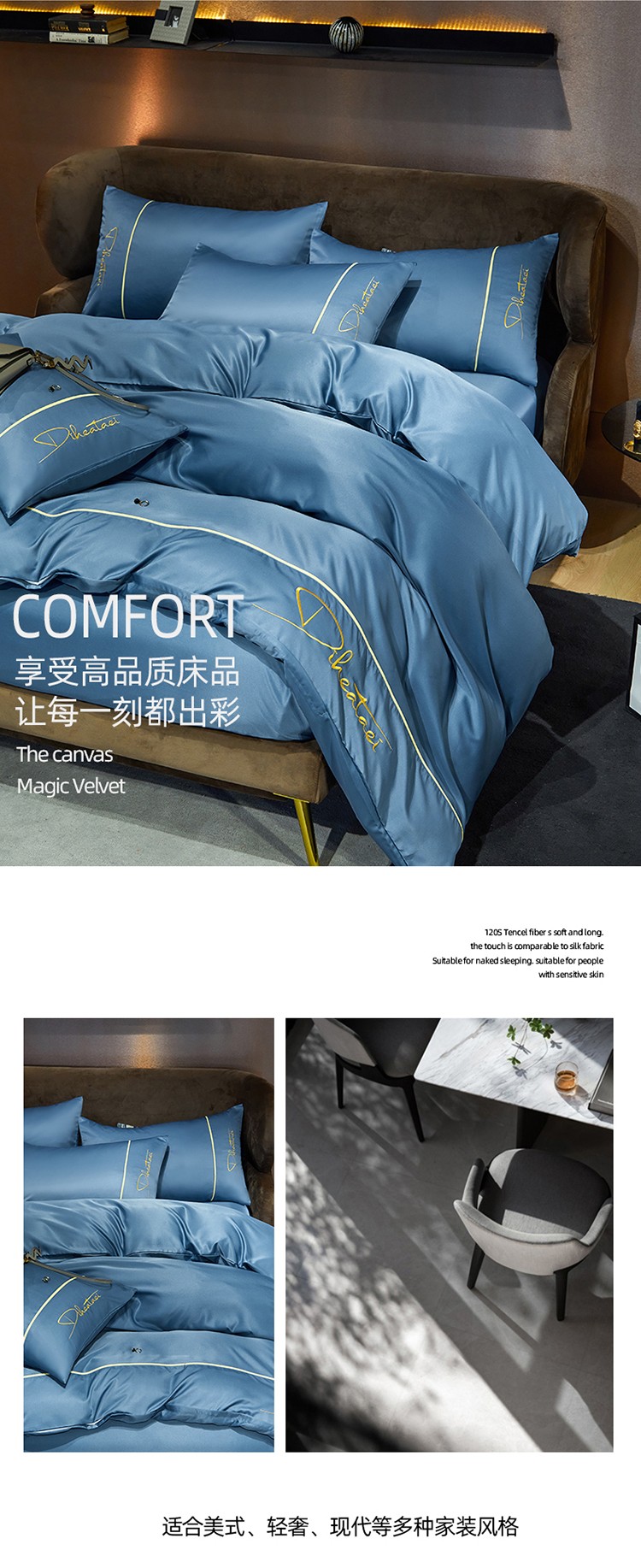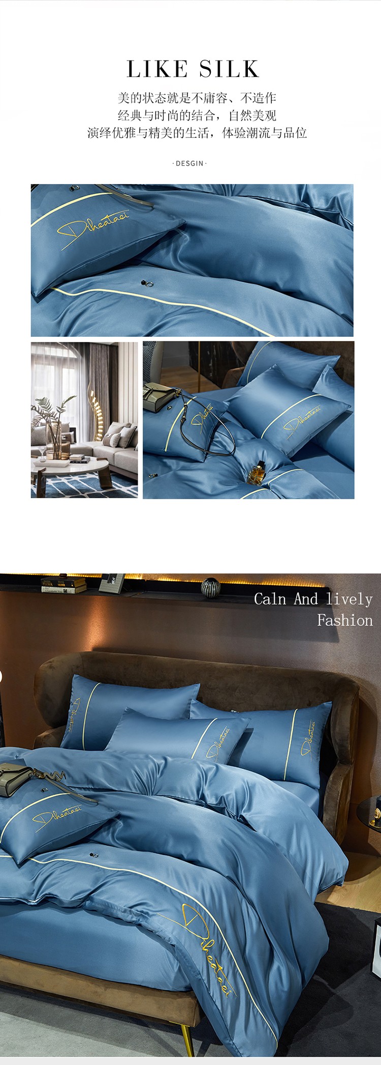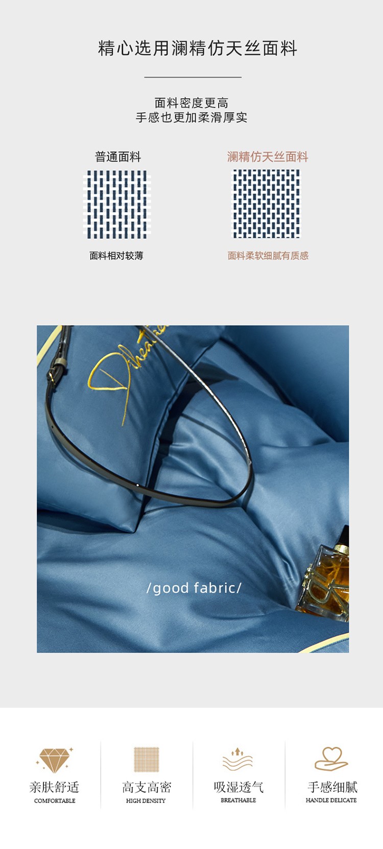 (总)凡客家居 2024新款高克重牛奶绒绣花拼角四件套,海洋蓝,奶油咖,深卡其,樱花粉