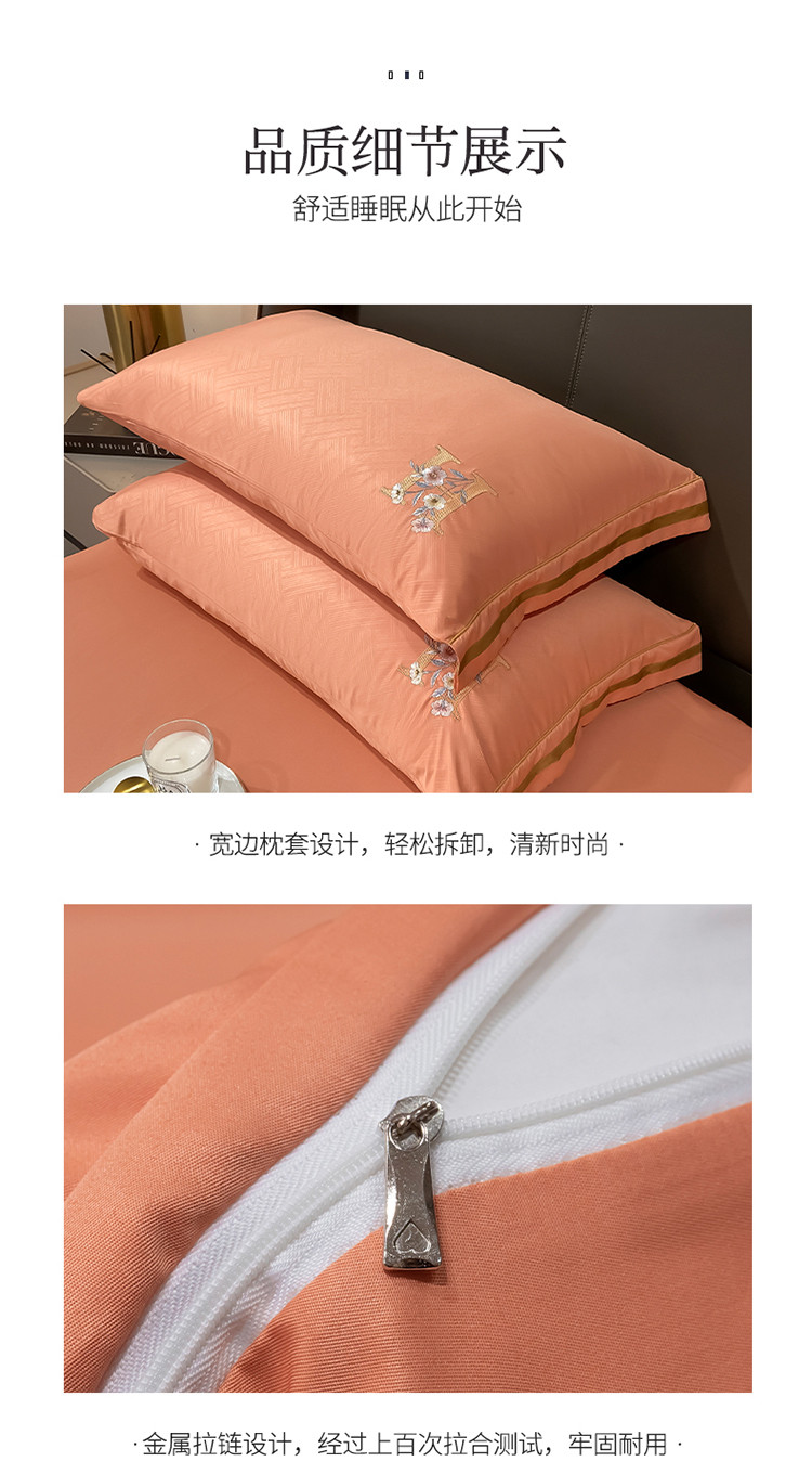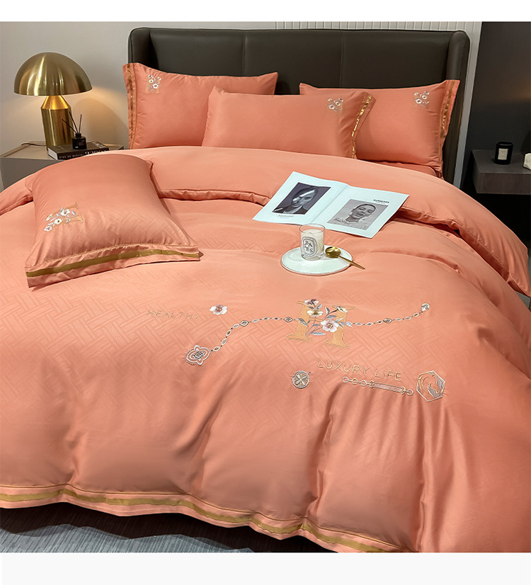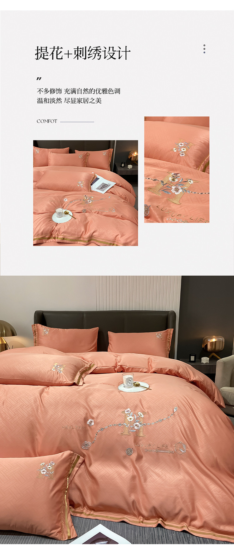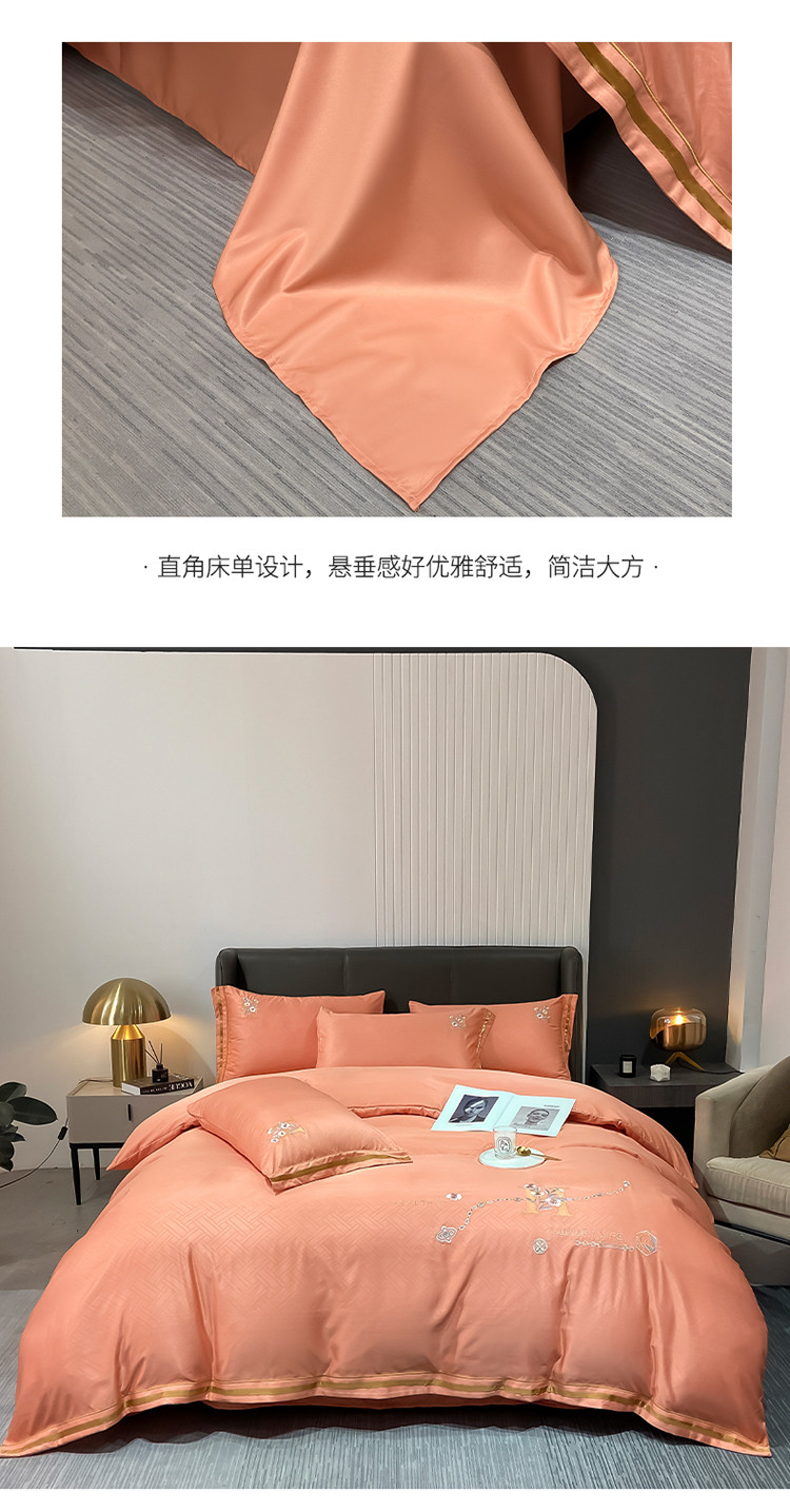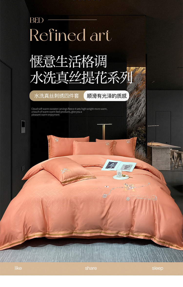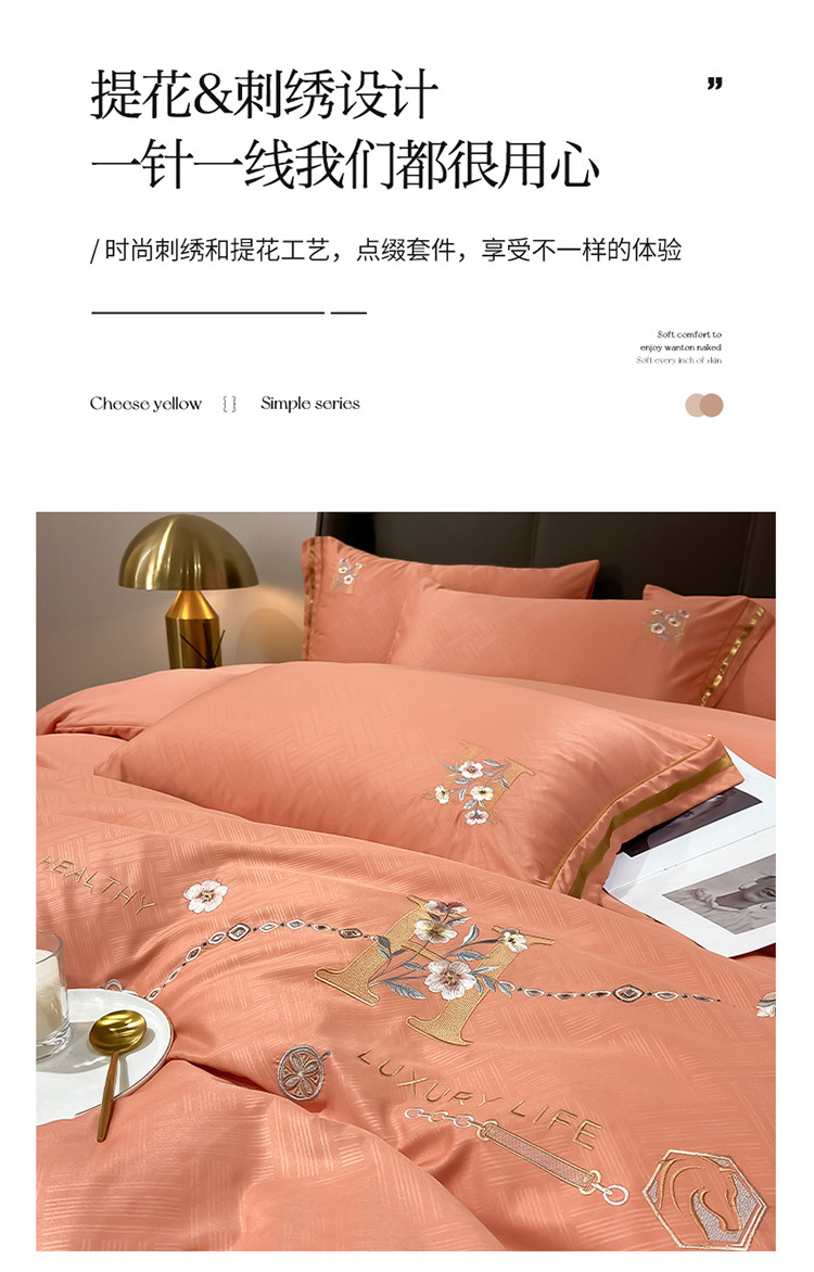 嗯呢 2023新款刺绣H款轻奢提花水洗真丝四件套提花-时尚桔