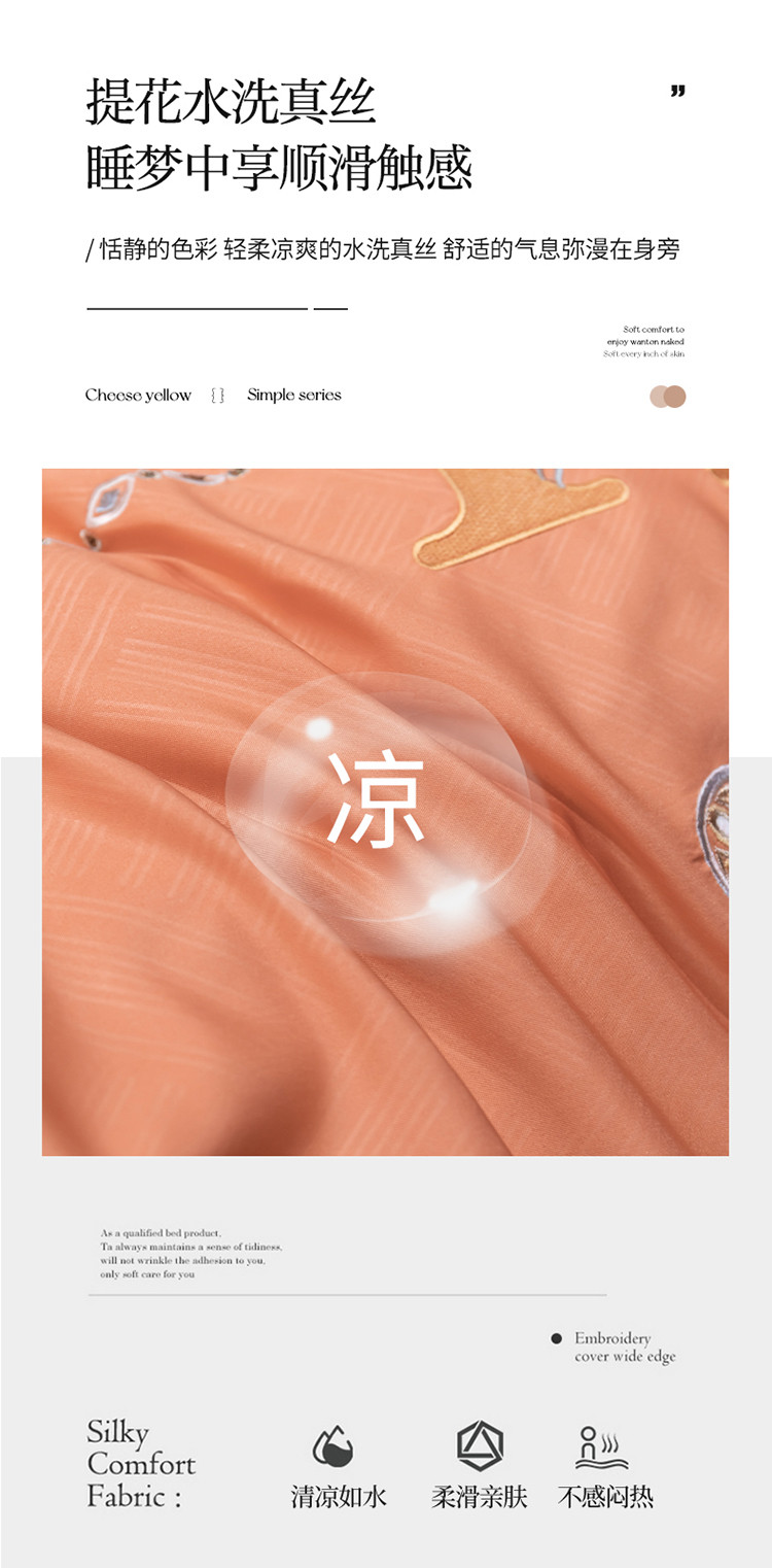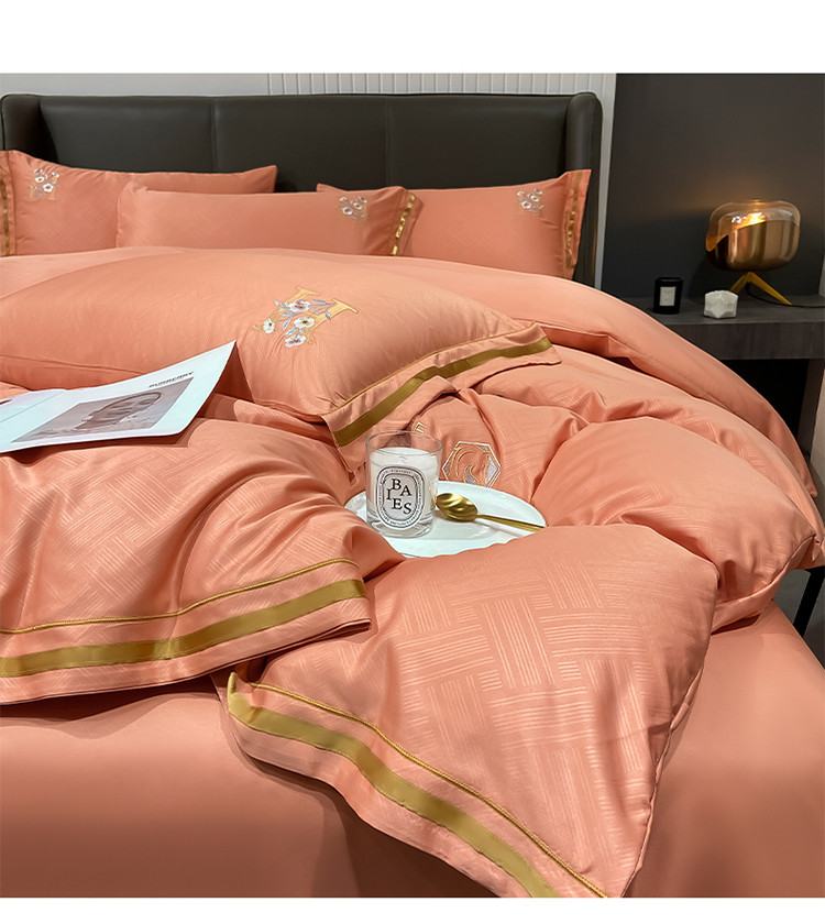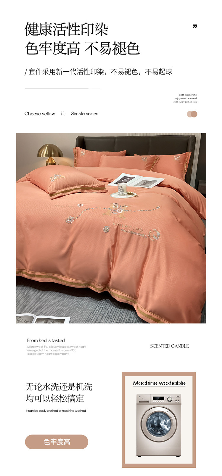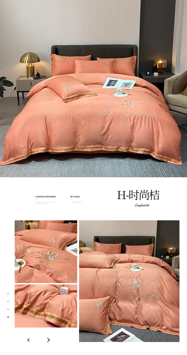 商品名称:嗯呢 2023新款刺绣H款轻奢提花水洗真丝四件套提花-时尚桔