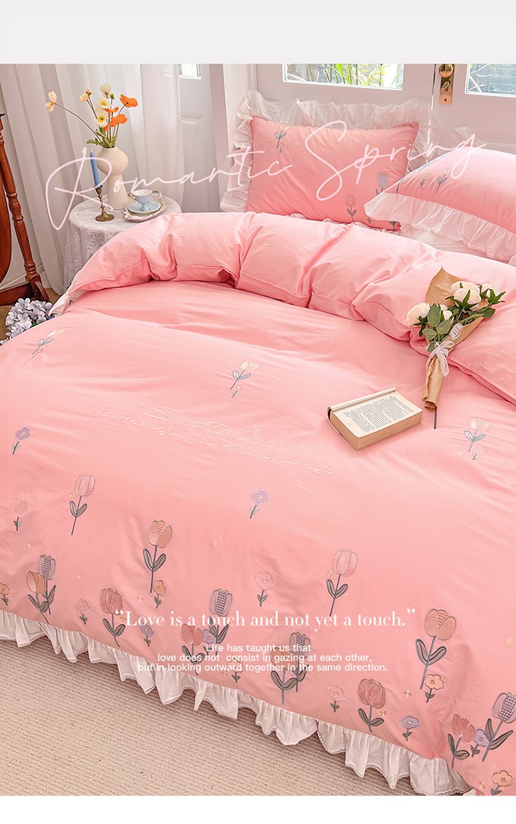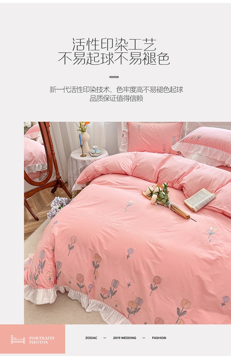 婳庭家居 2023新款长绒棉郁金香绣花四件套 郁金香浅粉
