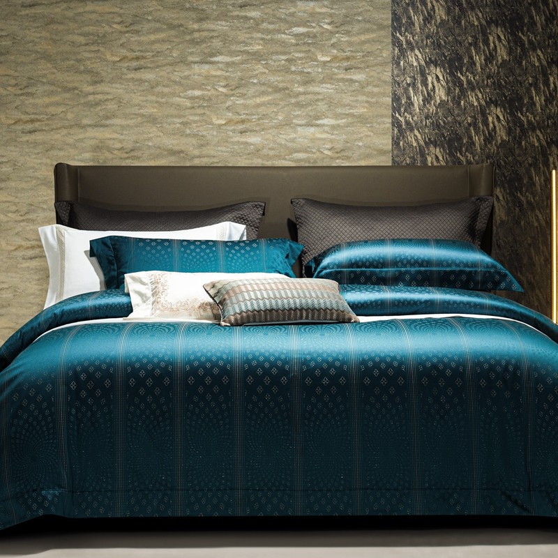 (总)雅韵诗真丝馆 2023新款全棉色织拼边四件套(不退换),色织拼边孔雀蓝,色织拼边深灰