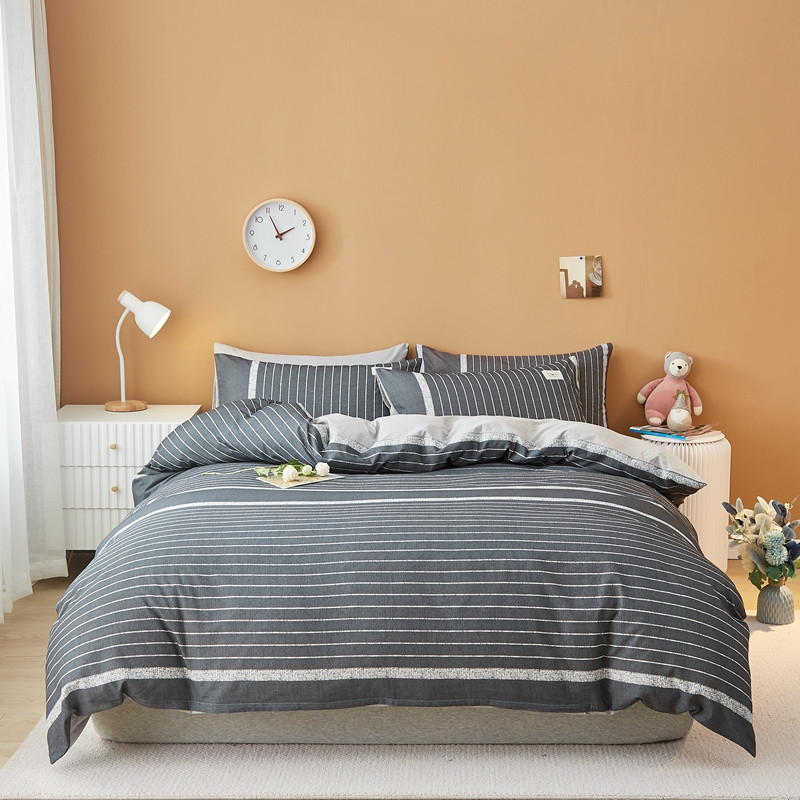 当前位置: 91家纺网 > 商品网购 > 床品套件 > 四件套 > 化纤普通四件套 > 宝士康 2023新款无印风系列四件套 深灰细条
