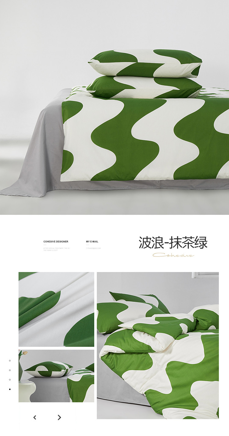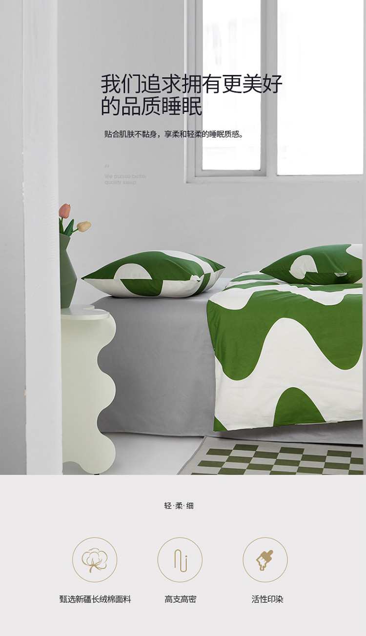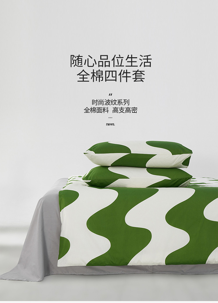 当前位置: 91家纺网 > 商品网购 > 床品套件 > 四件套 > 全棉普通四件套 > 艾佳2025新款全棉黑白经典波浪纹四件套-场景一波浪-抹茶绿