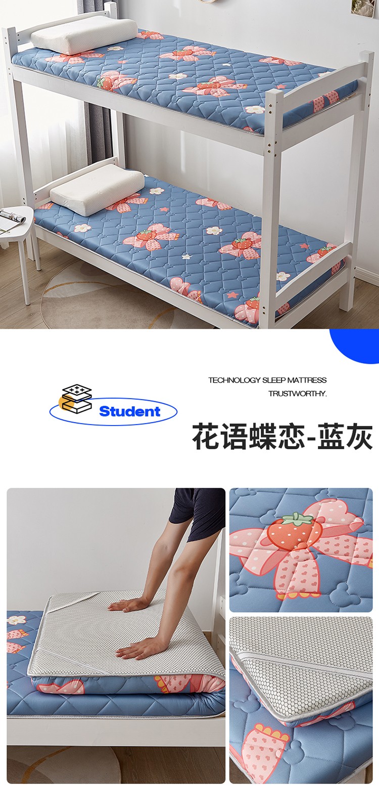 当前位置: 91家纺网 > 商品网购 > 床垫/床褥 > 普通床垫 > 寐珂 2025新款A类针织大豆学生床垫 花语蝶恋-蓝灰
