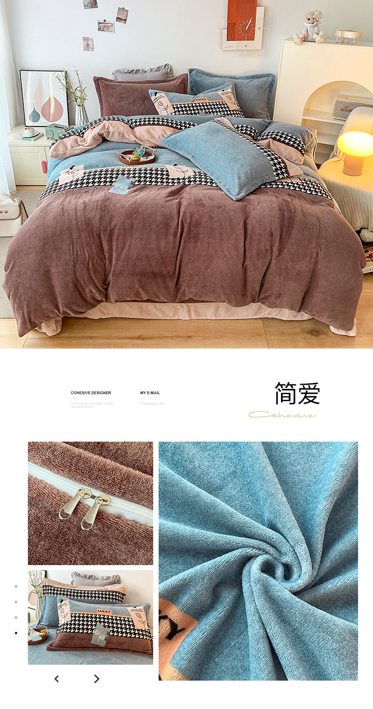 (总)锦罗绣 2025新款牛奶绒肌理纹四件套,肌理纹-灰,肌理纹-咖,肌理纹-蓝,肌理纹-绿,肌理纹-棕,艾草绿,繁星蓝,粉拼灰,米白拼灰,暖橘,浅灰