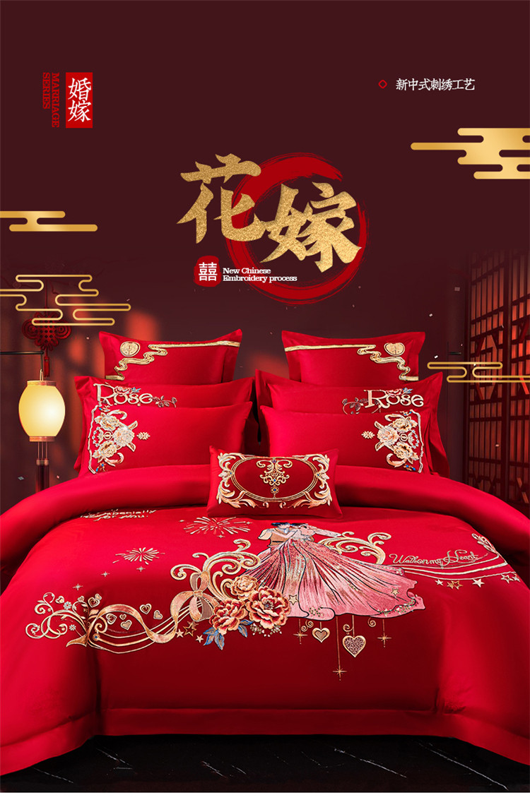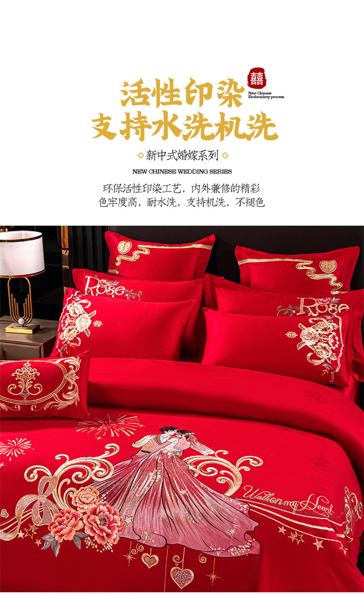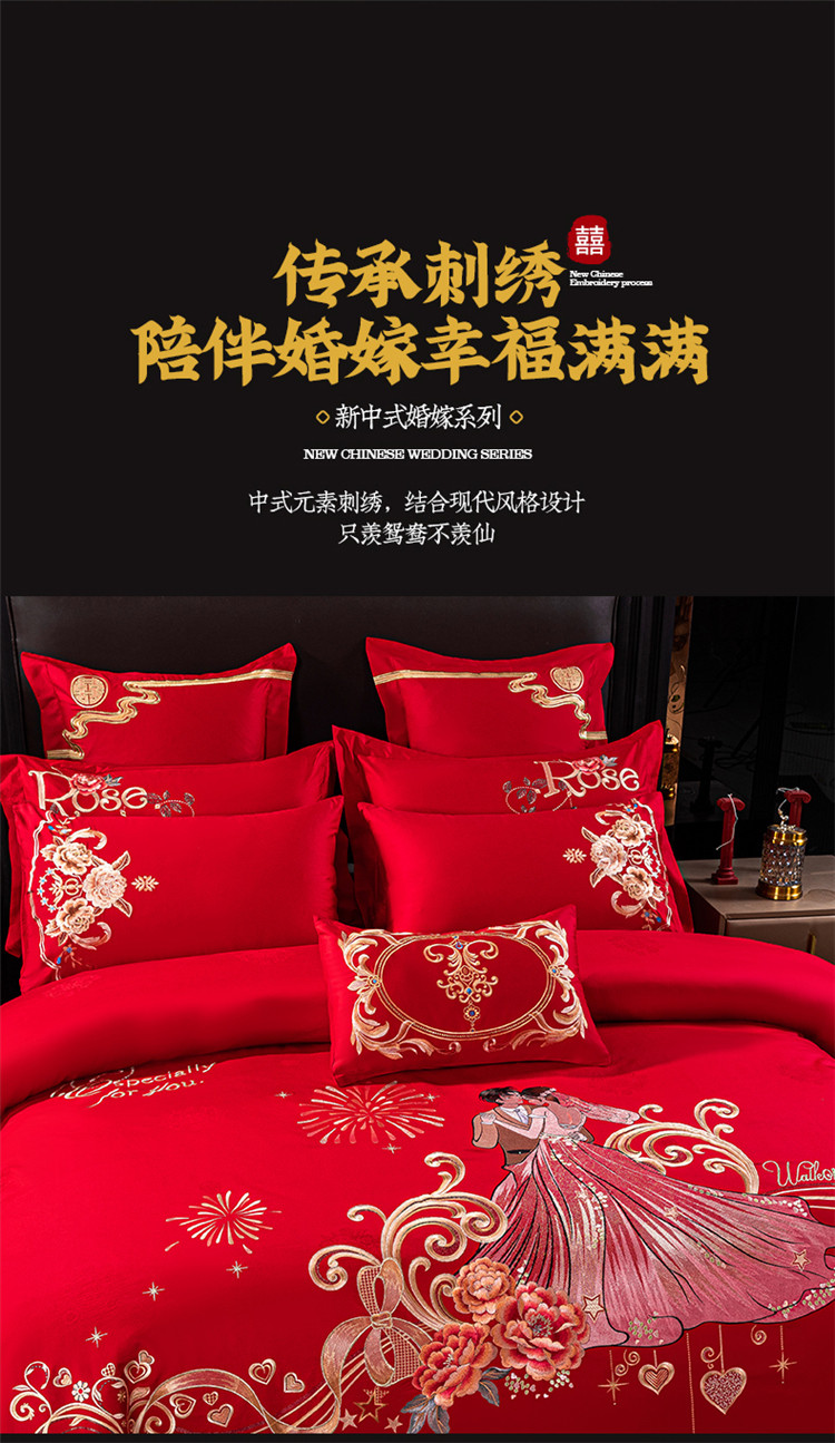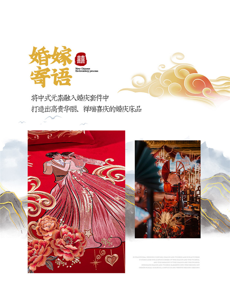 当前位置: 91家纺网 > 商品网购 > 床品套件 > 四件套 > 长绒棉四件套 > 千禧 2022新款婚庆绣花套件 花嫁
