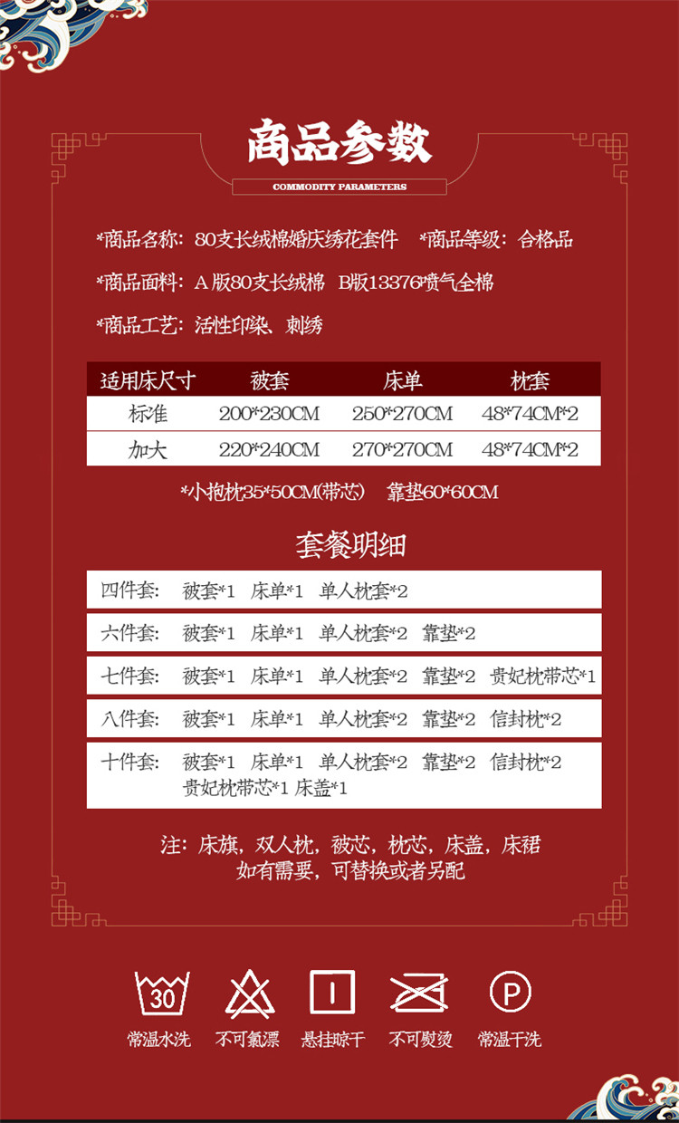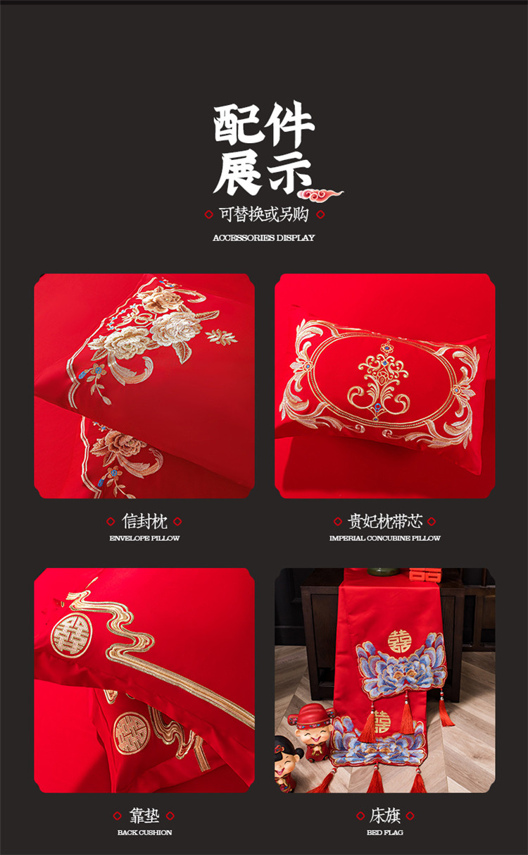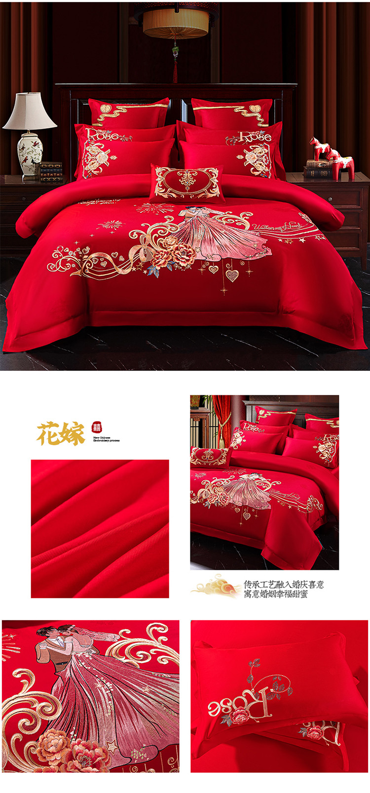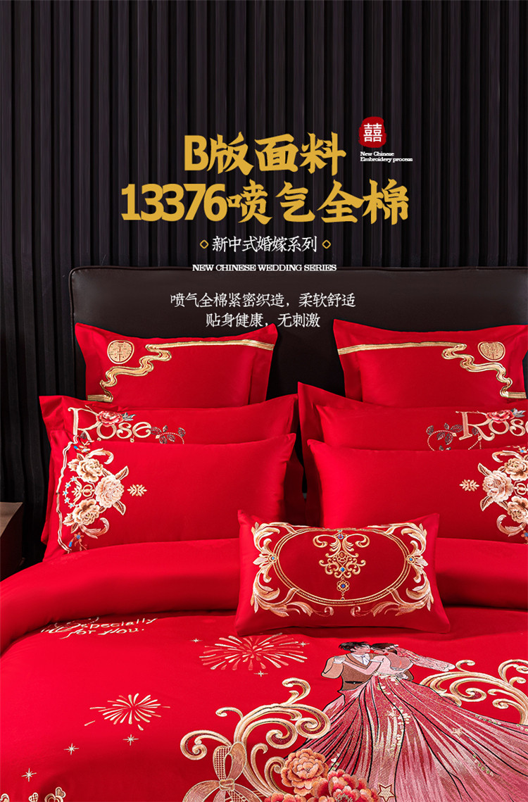 当前位置: 91家纺网 > 商品网购 > 床品套件 > 四件套 > 长绒棉四件套 > 千禧 2022新款婚庆绣花套件 花嫁
