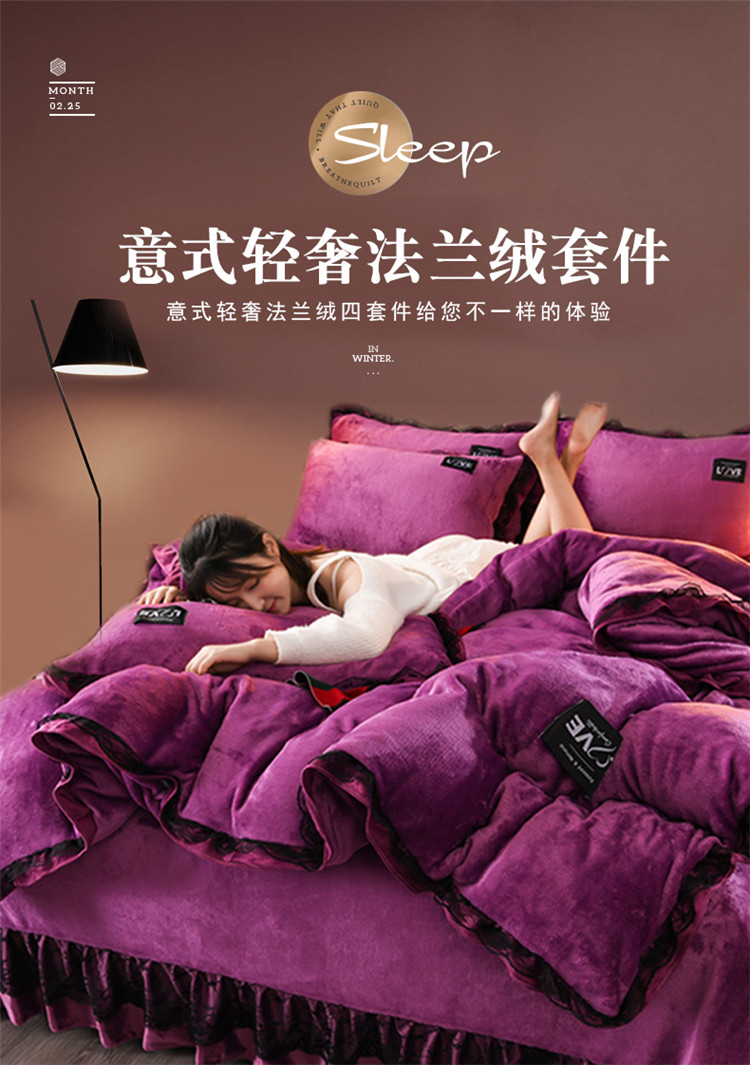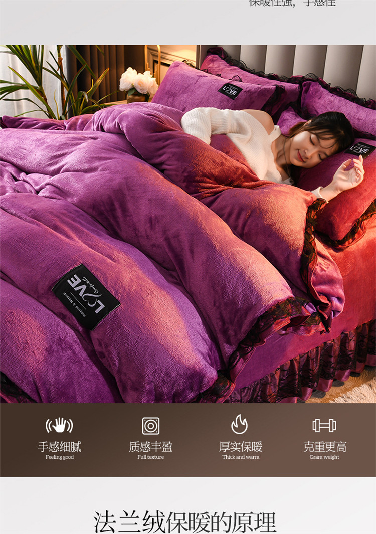 商品名称:铠畅 2022新款牛奶绒四件套-倾城系列 倾城豆沙