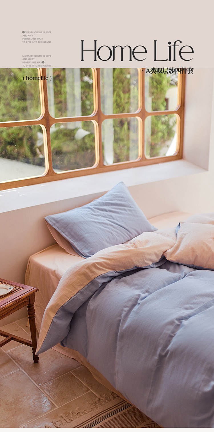 当前位置: 91家纺网 > 商品网购 > 床品套件 > 四件套 > 全棉普通四件套 > 安莱生活 2022新款全棉双层纱纯色四件套--小清新风 兰米