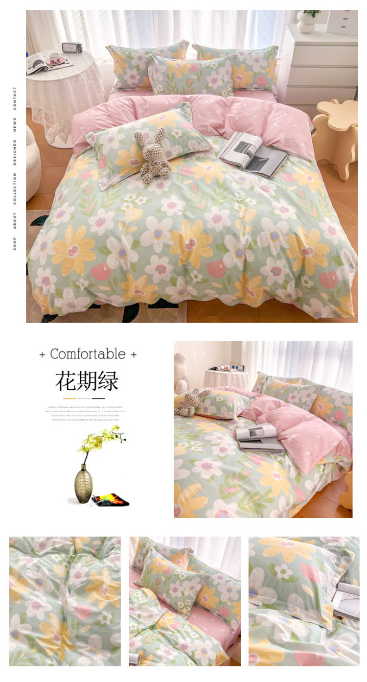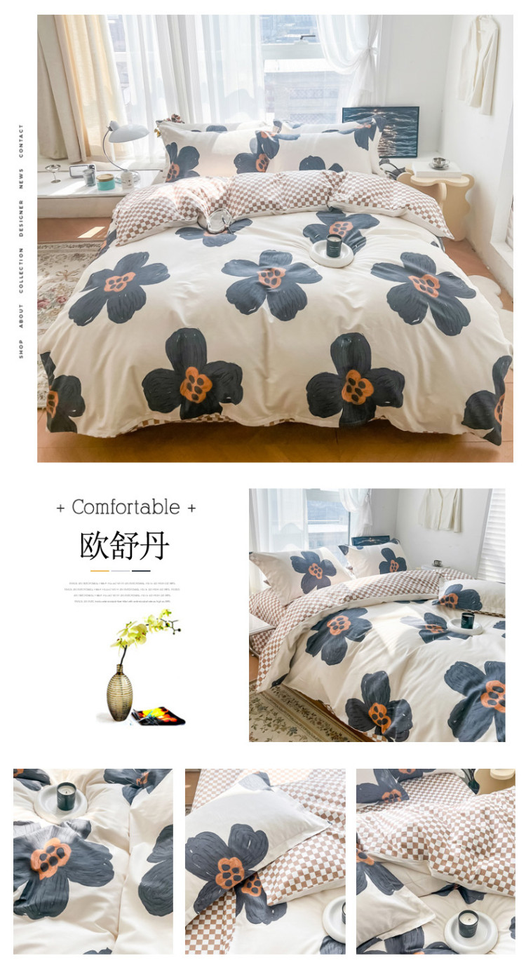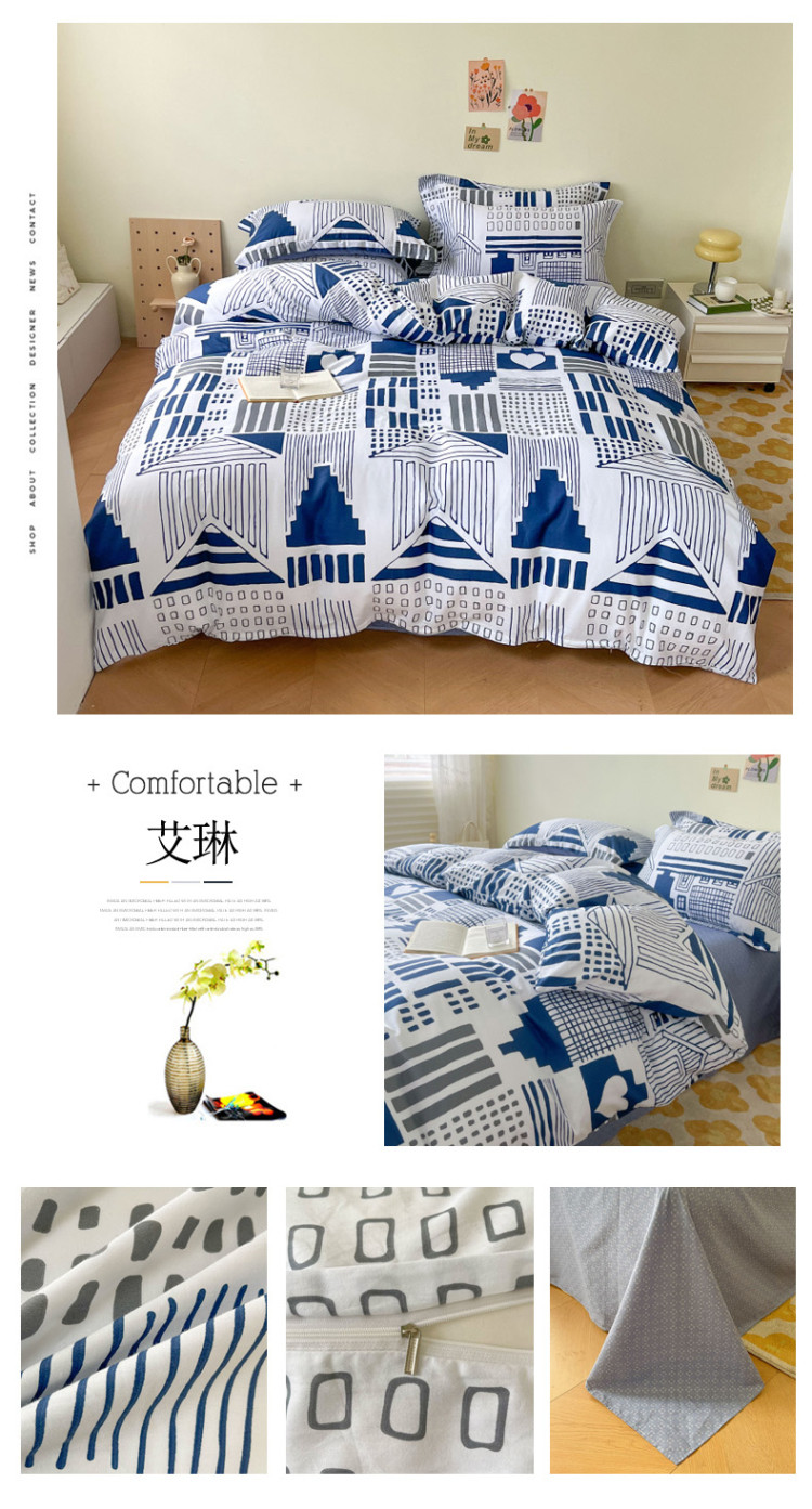 (总)盛馨家纺 小清新北欧风精梳棉全棉四件套床笠纯棉四件套