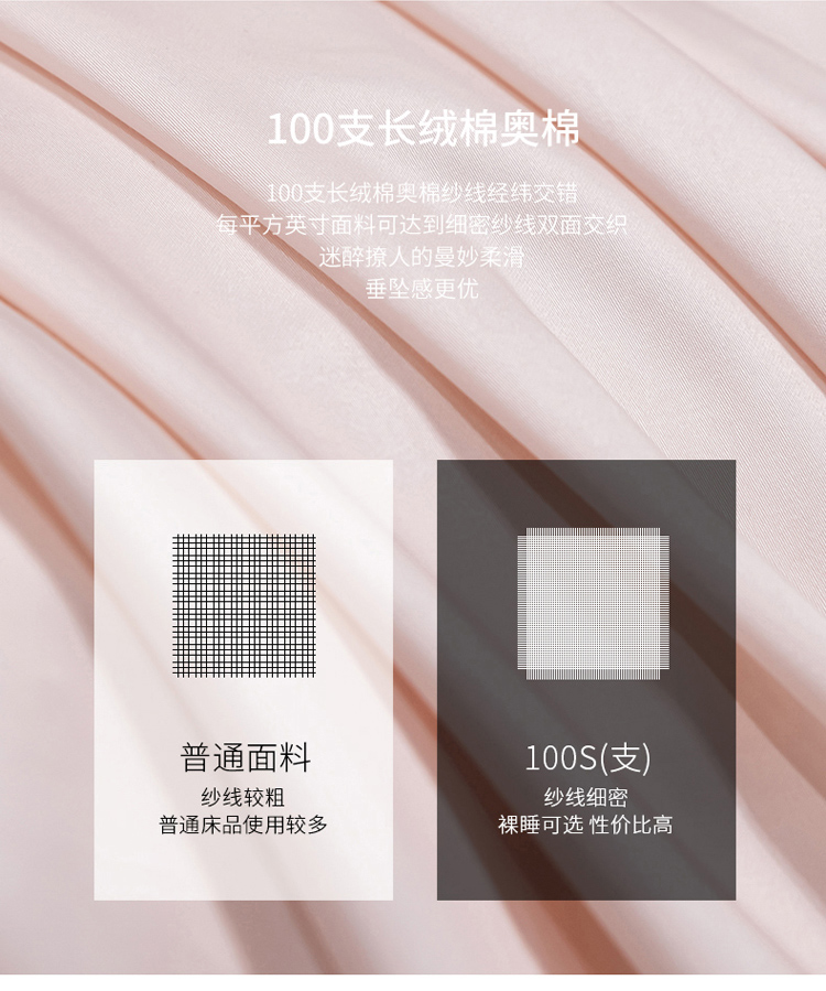 爱缦 2022新款梦芭莎系列100支长绒棉奥棉四件套 柔粉