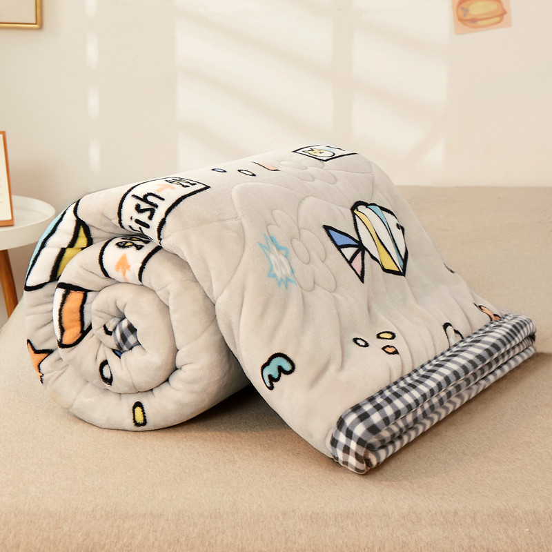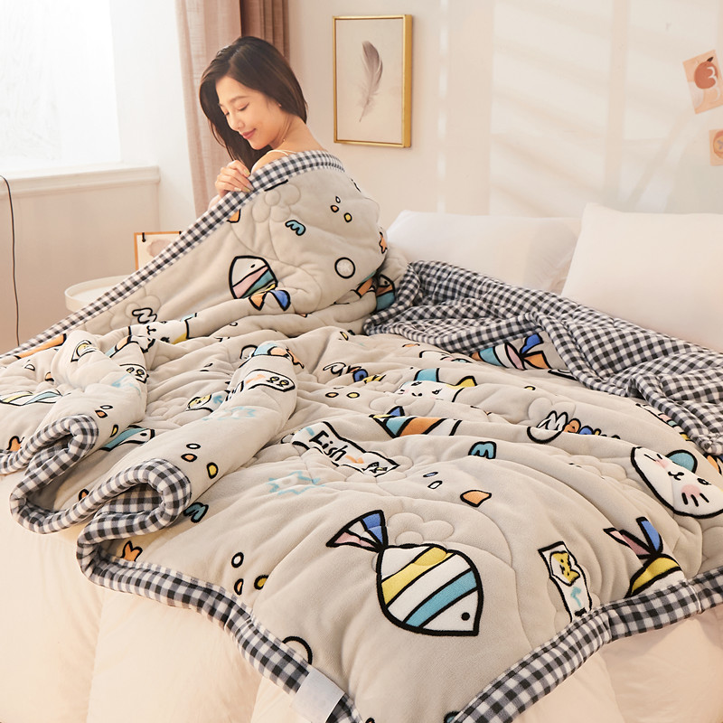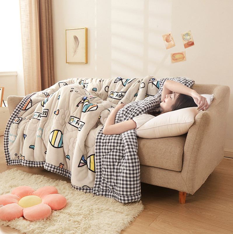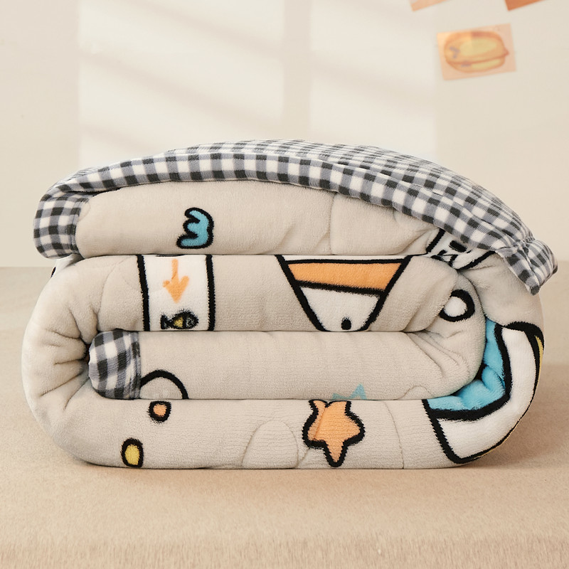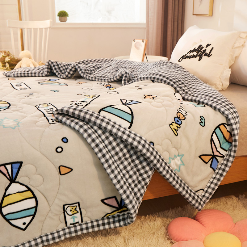 (总)云木里 2025新款A版牛奶绒B版菠萝格夹棉绗绣三层毯盖毯毯子,格子恐龙,好看女孩,灰蓝,灰色,卡其,墨绿,奶黄,浅粉,浅蓝,秋风绿,小猫鱼,中格灰