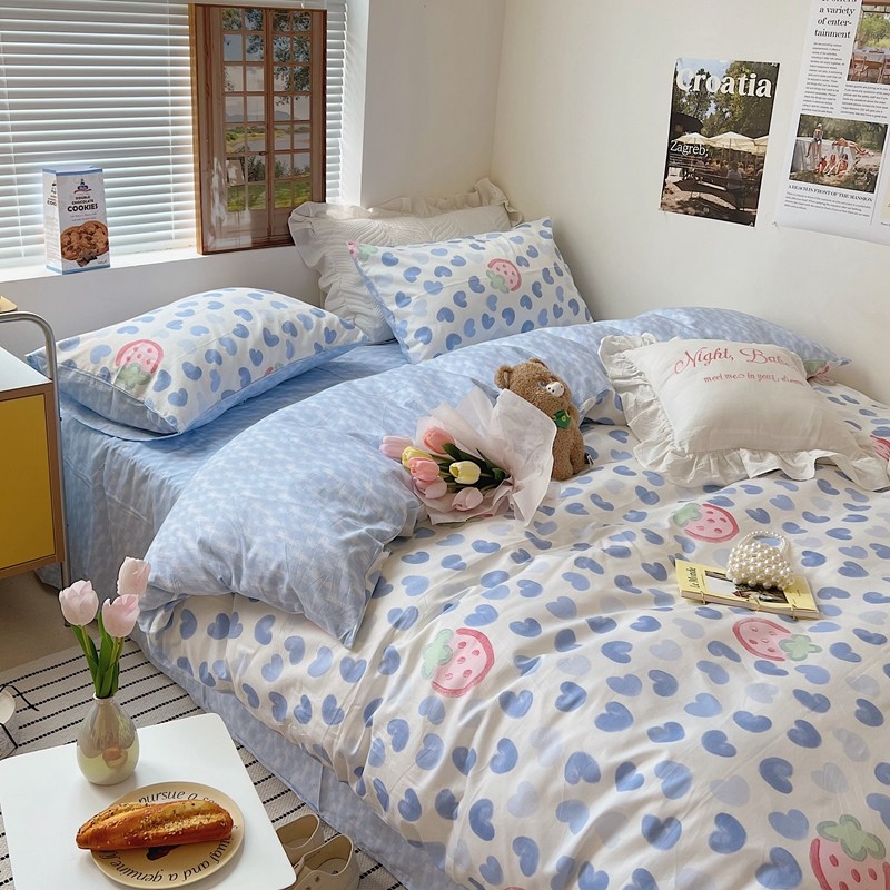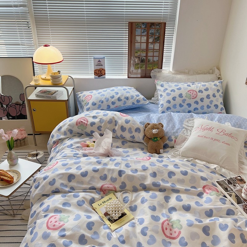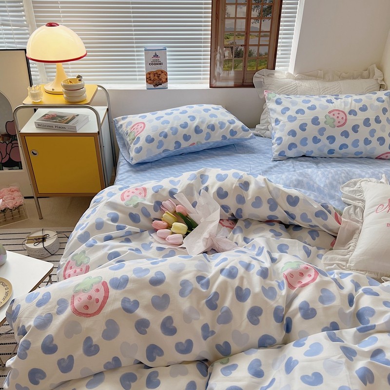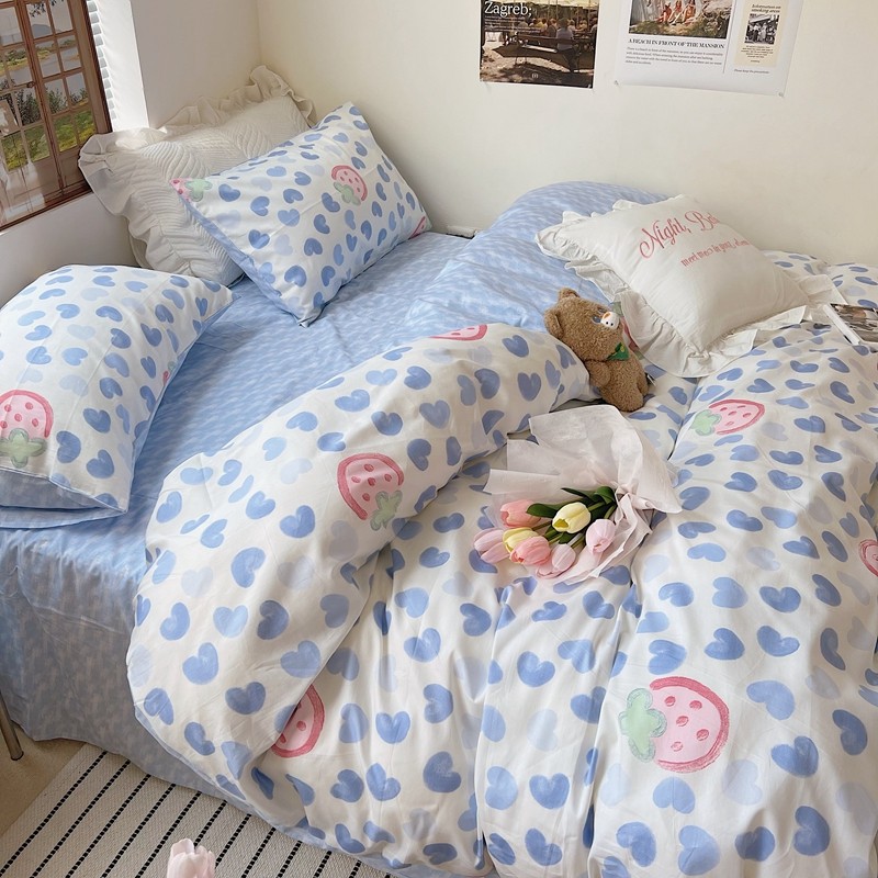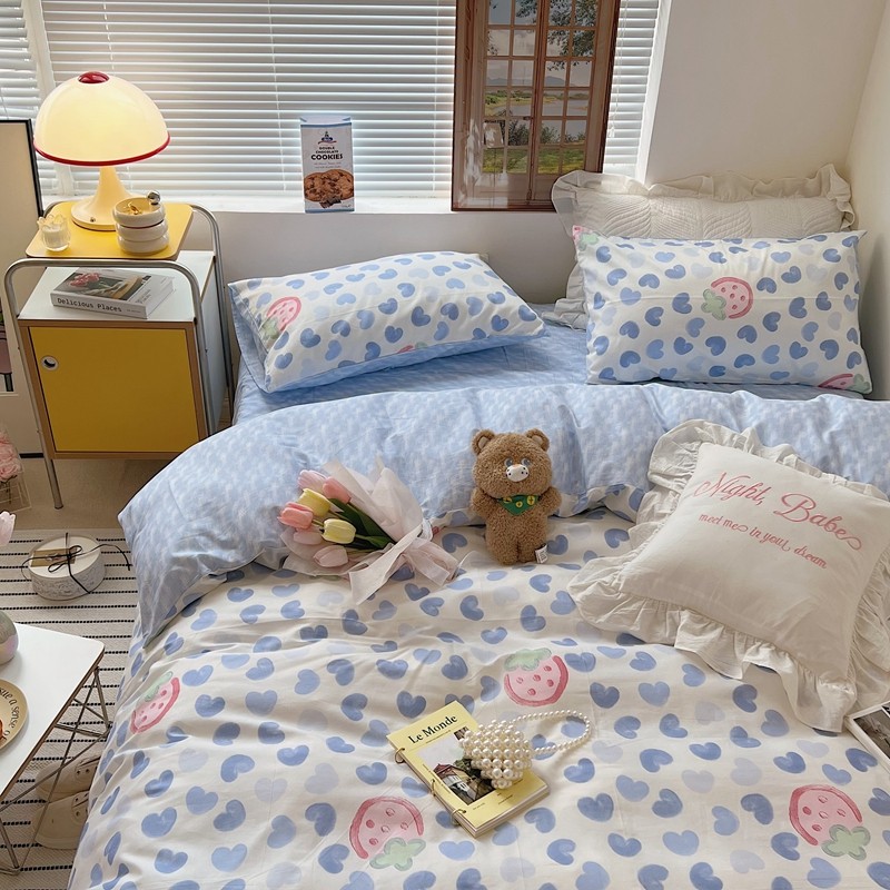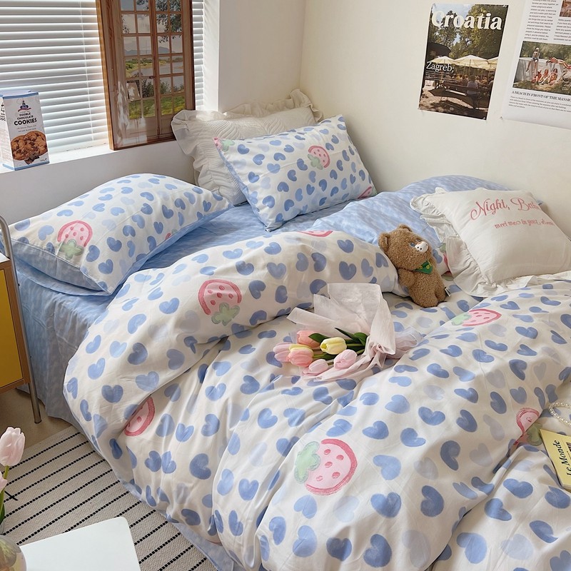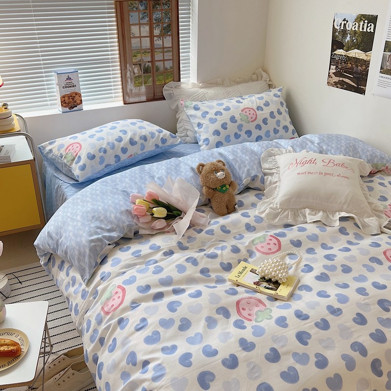 顾里家纺 2022ins韩系全棉四件套韩系花花系列 蓝心草莓