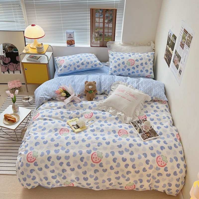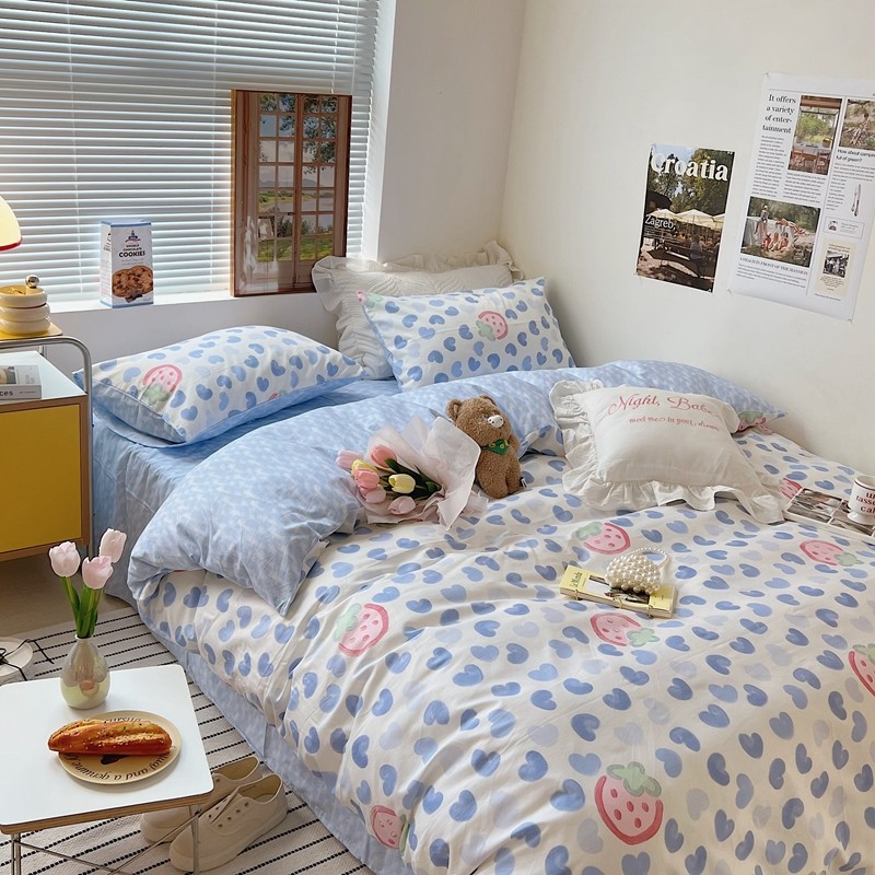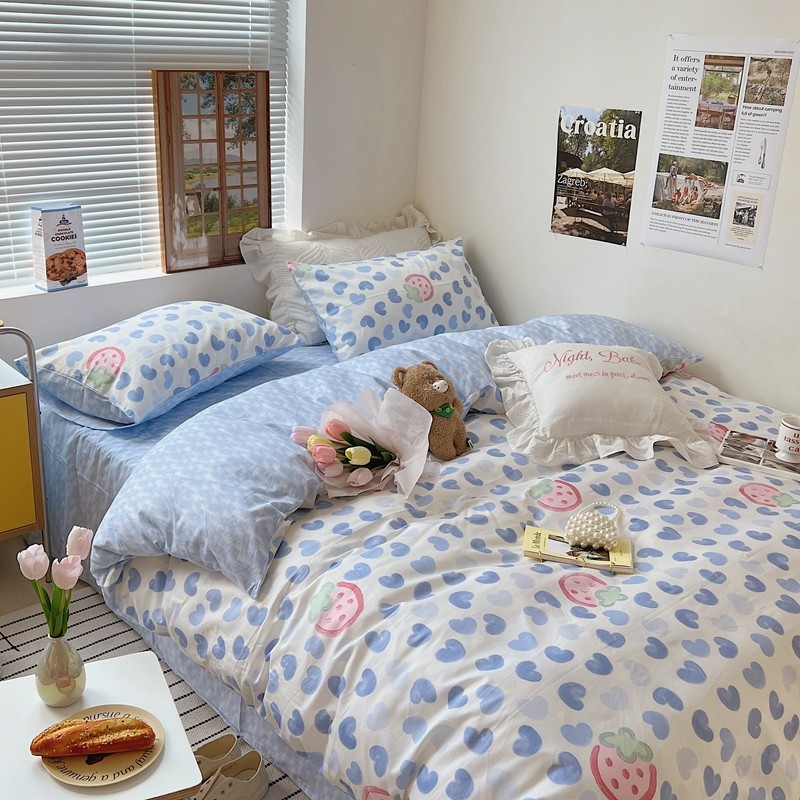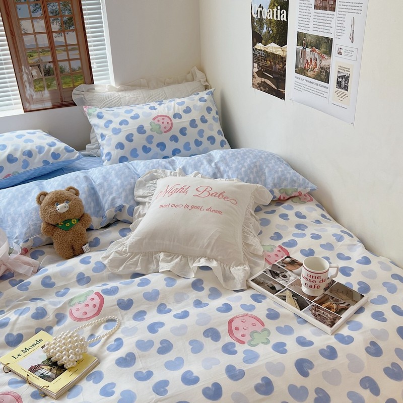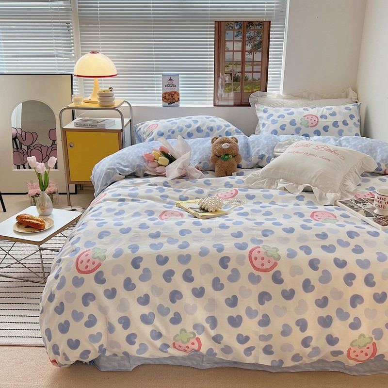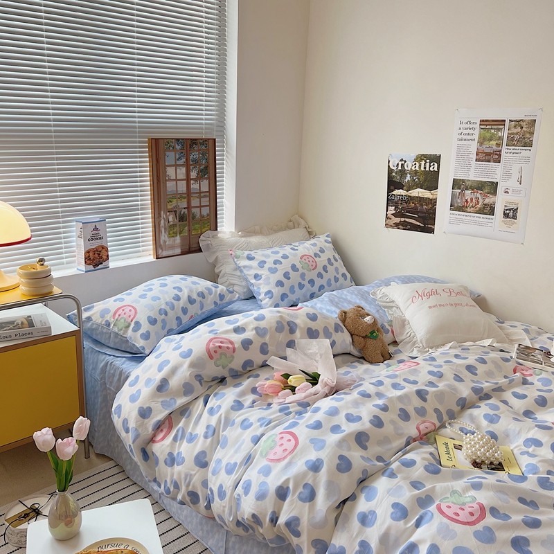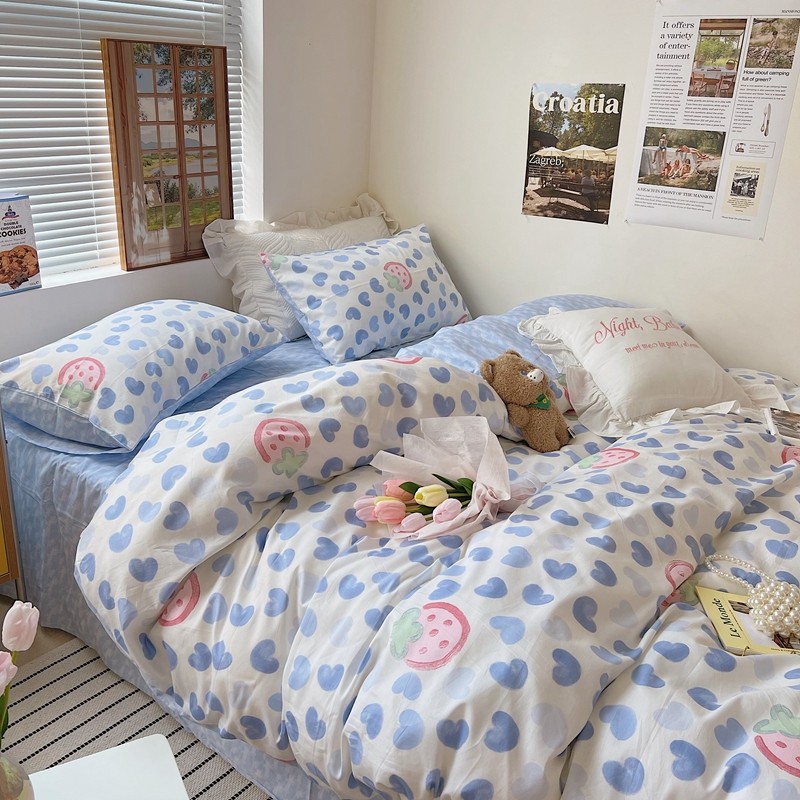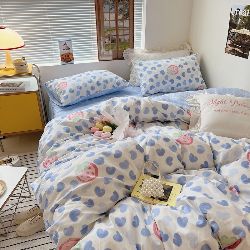 顾里家纺 2022ins韩系全棉四件套韩系花花系列 蓝心草莓
