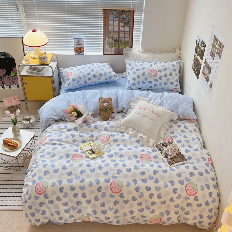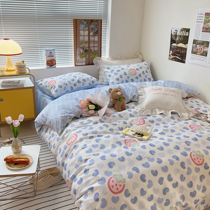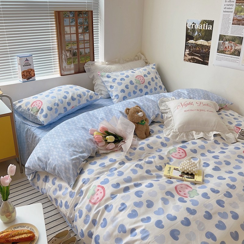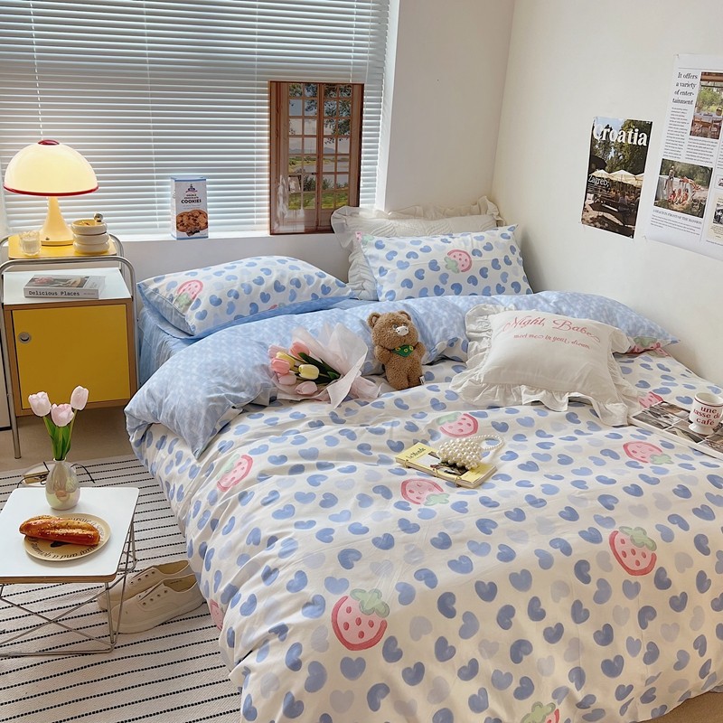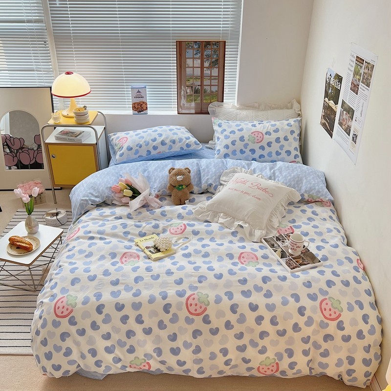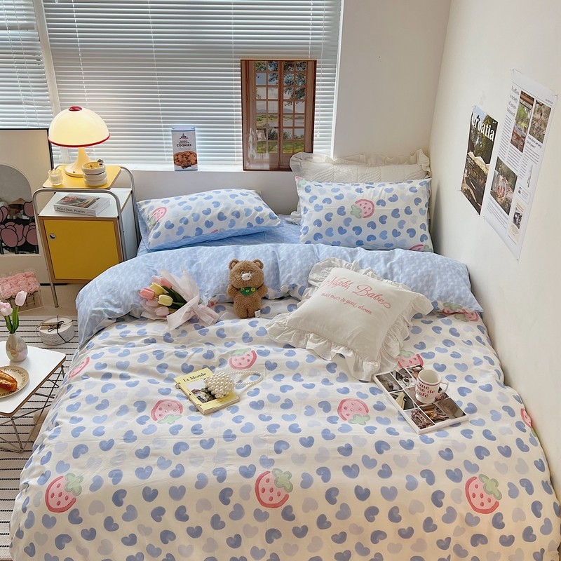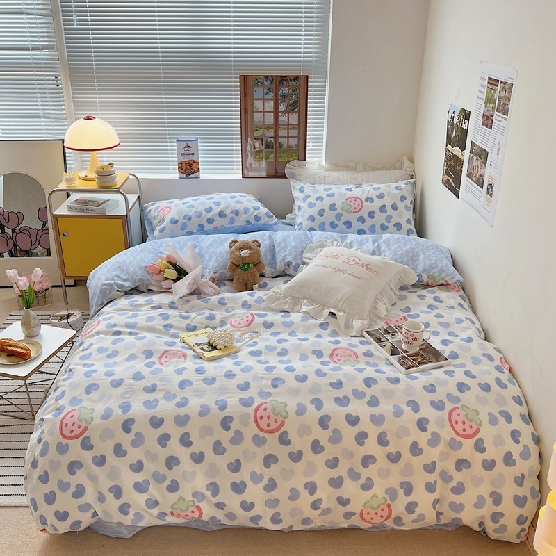 顾里家纺 2022ins韩系全棉四件套韩系花花系列 蓝心草莓
