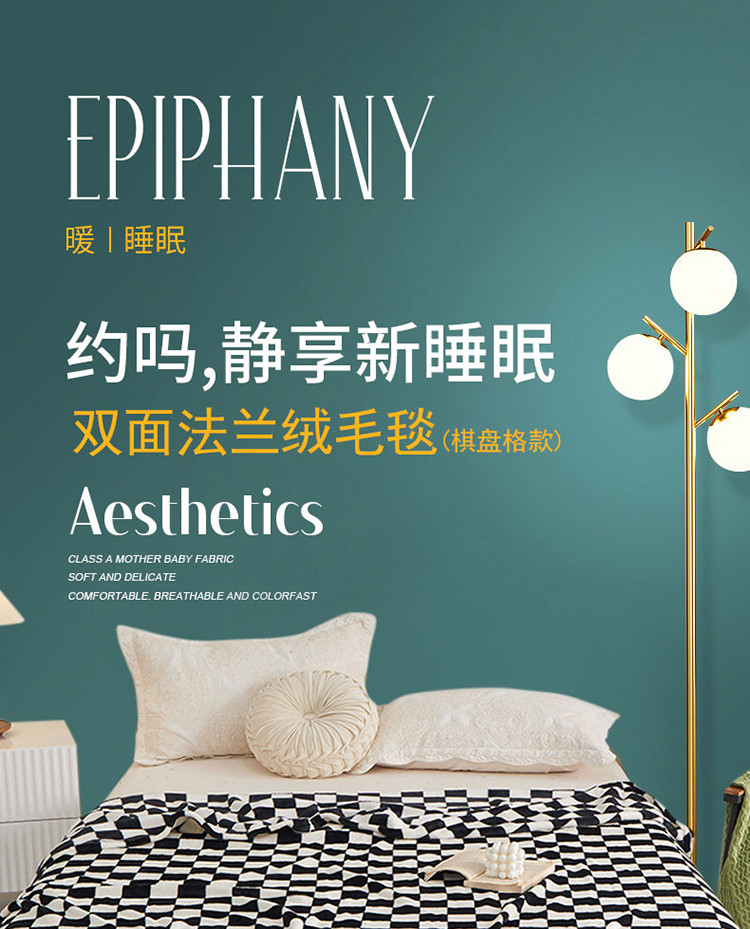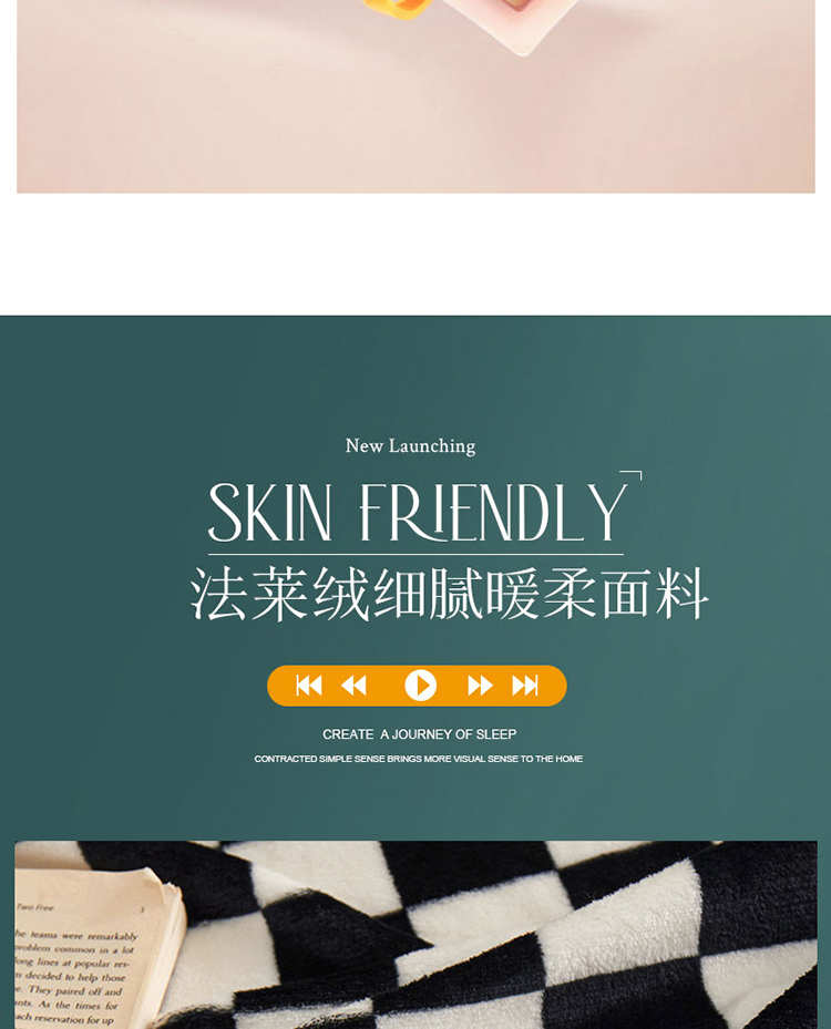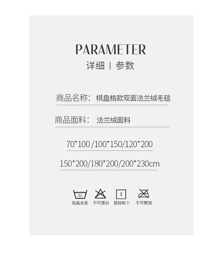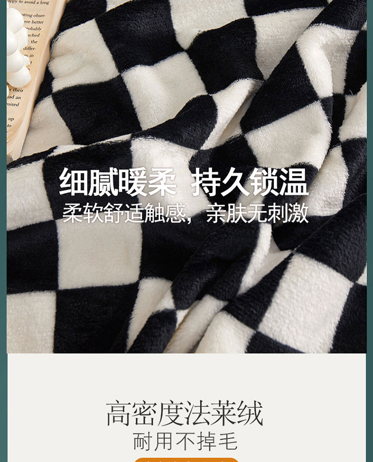 商品名称:新丽佳2022新款法兰绒棋盘格毛毯 黑白格