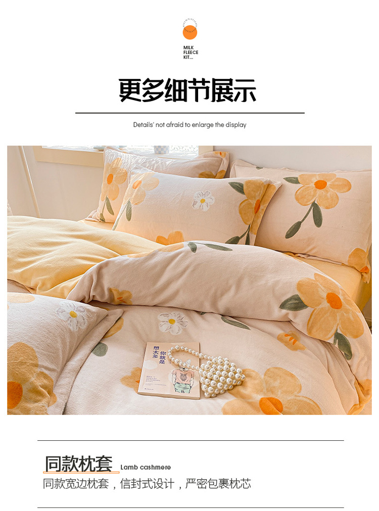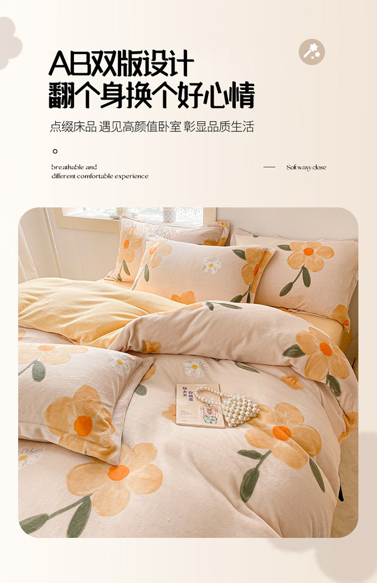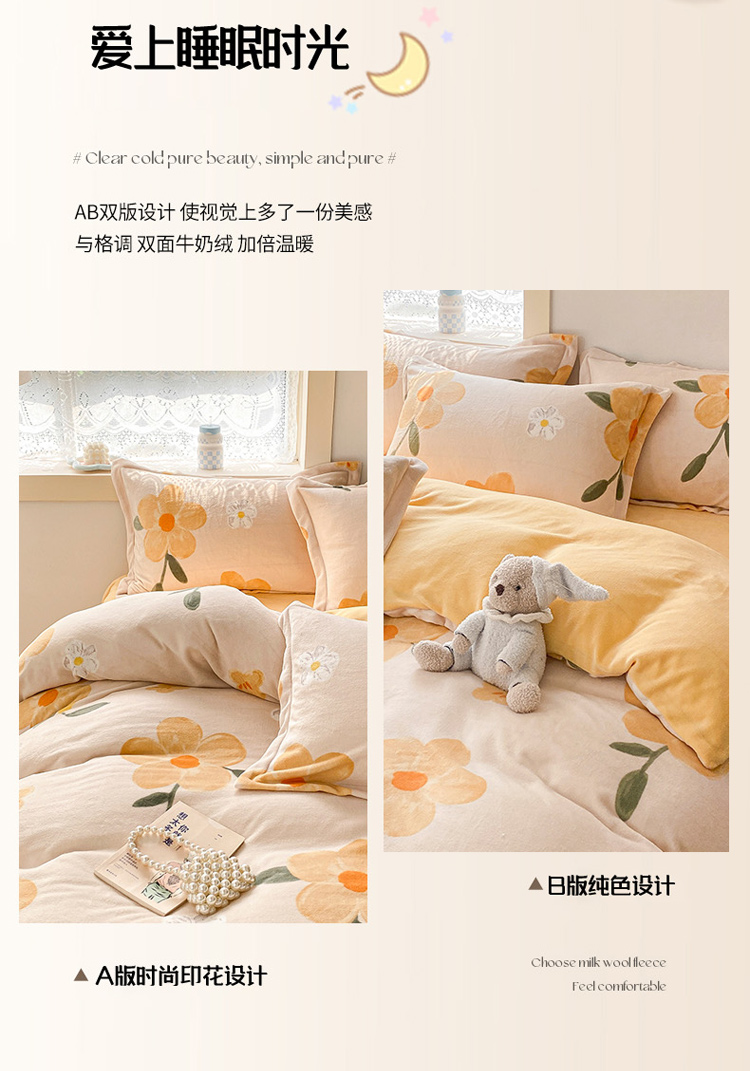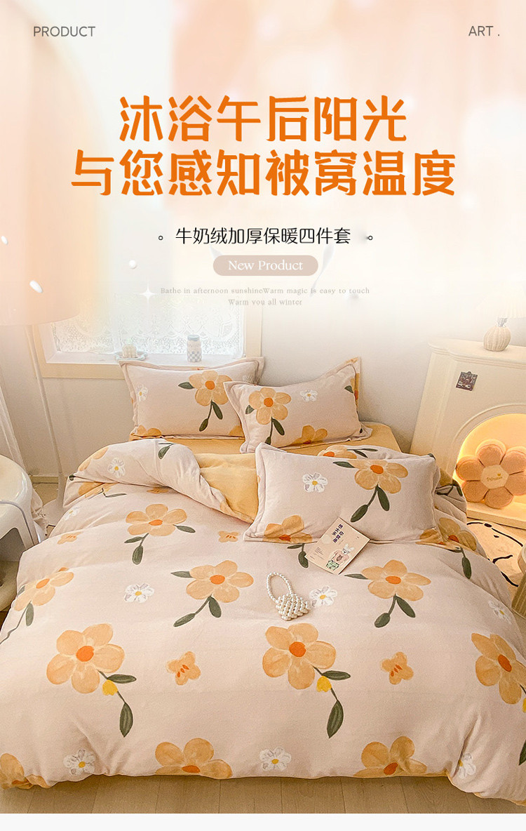 商品名称:沐慕 2022新款牛奶绒四件套 花季