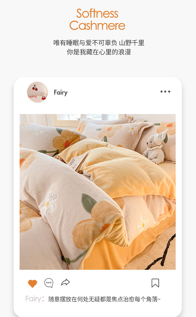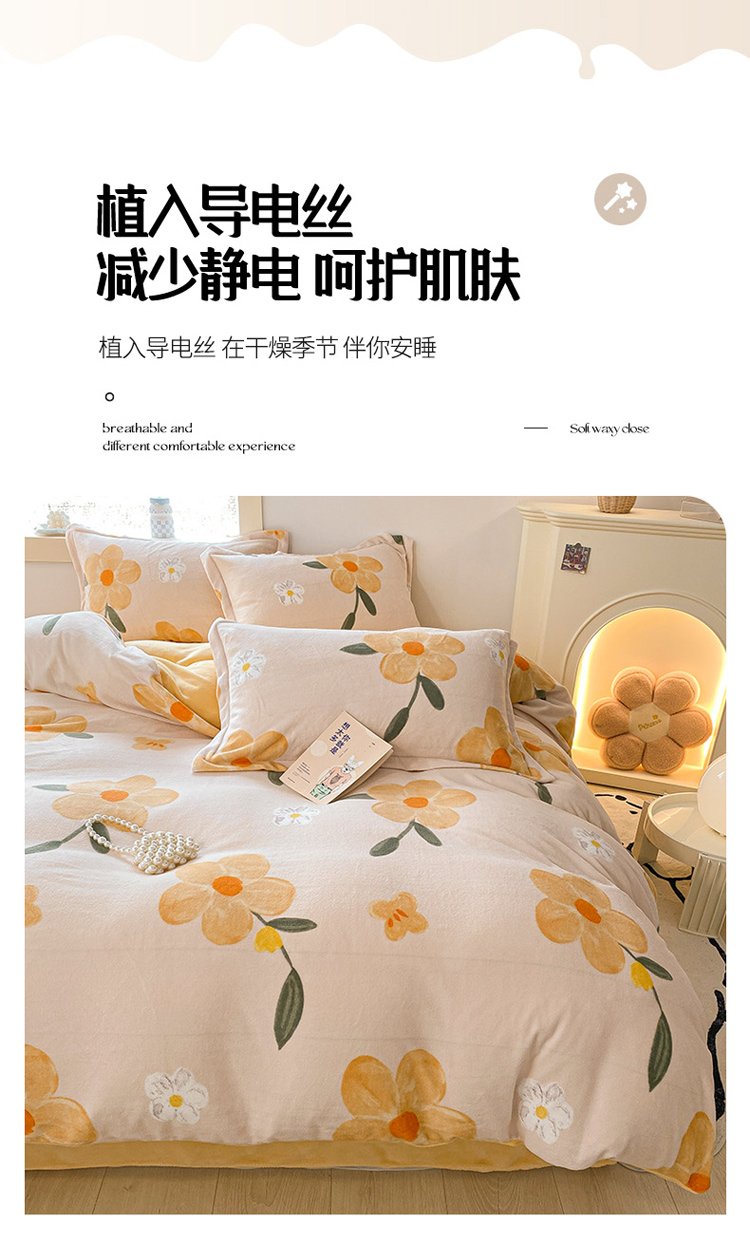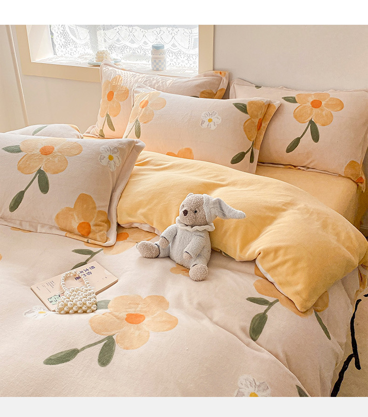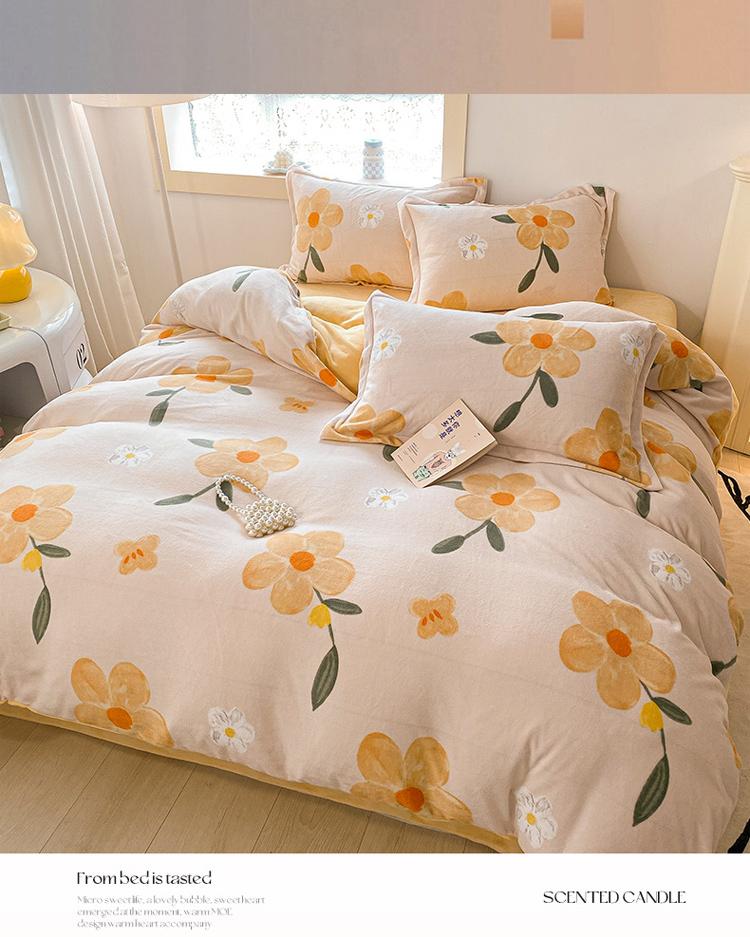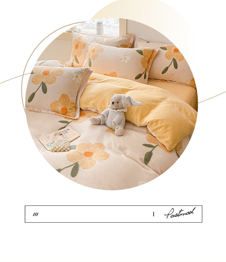 商品名称:沐慕 2022新款牛奶绒四件套 花季