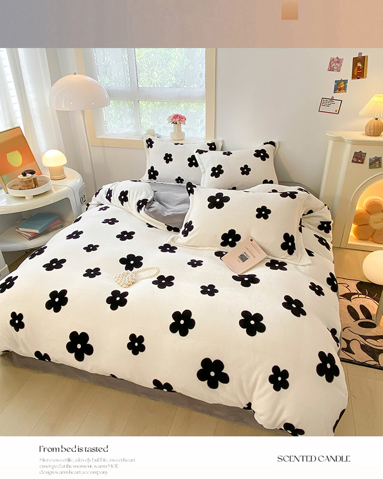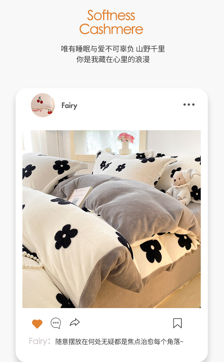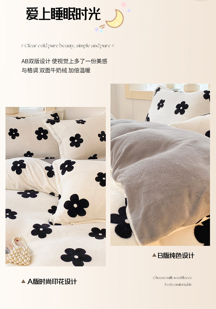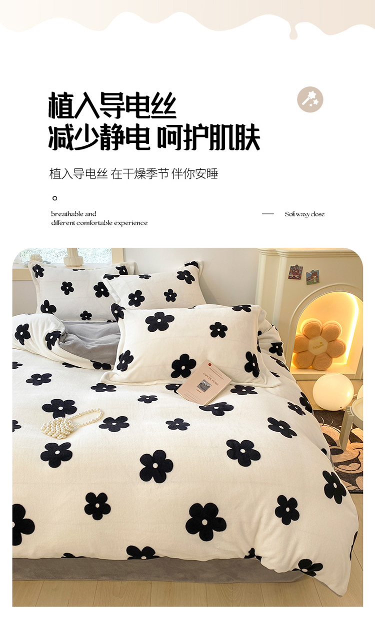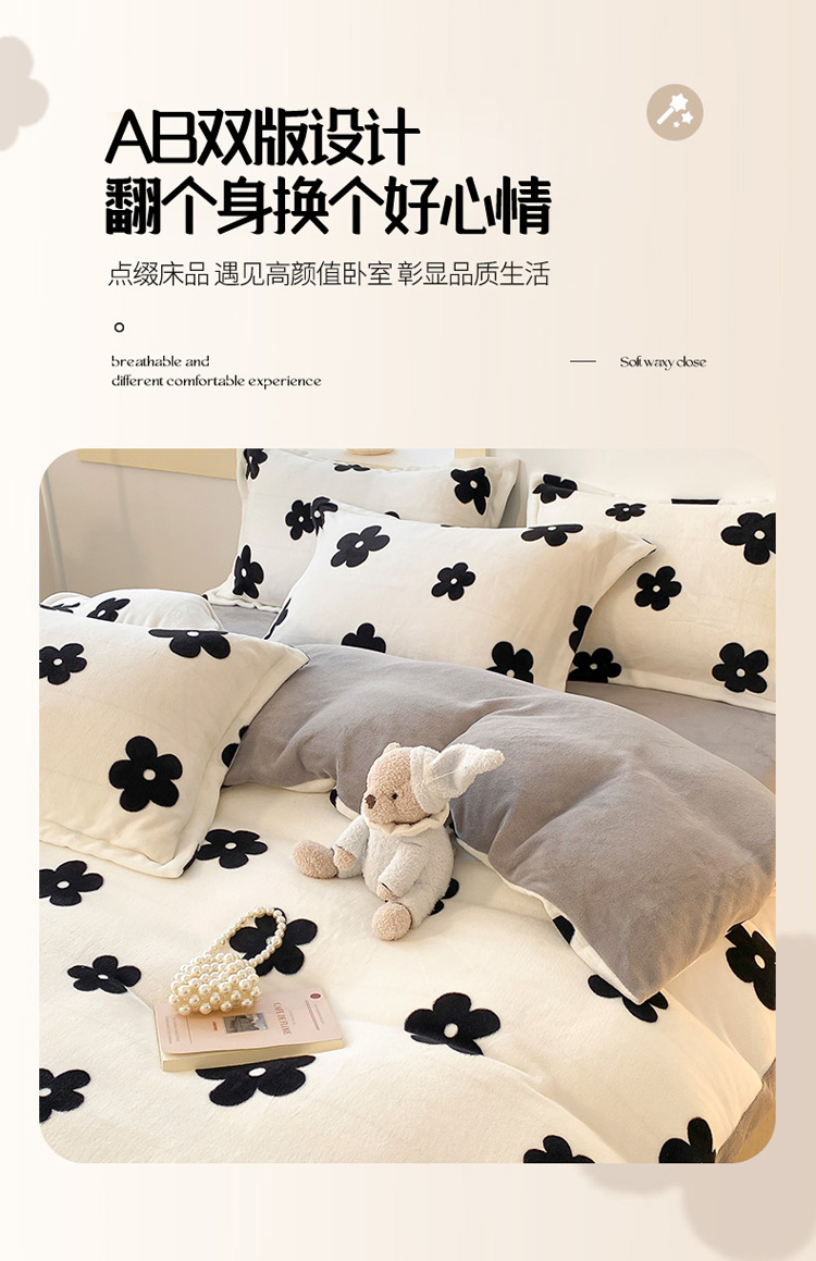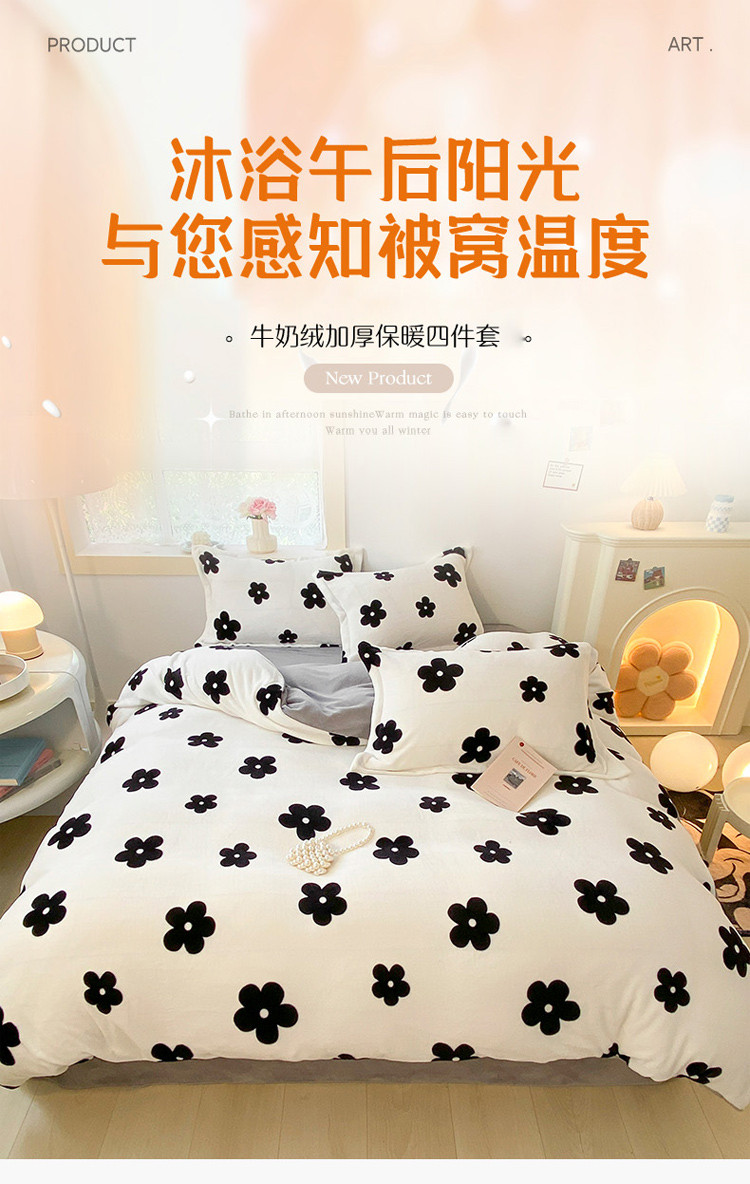 商品名称:沐慕 2022新款牛奶绒四件套 香系花花