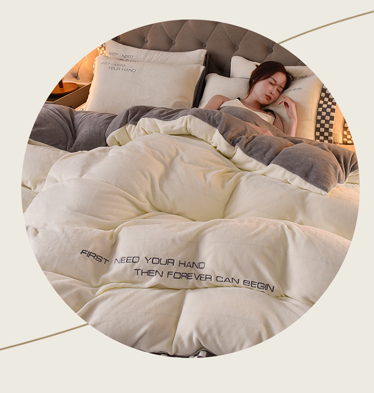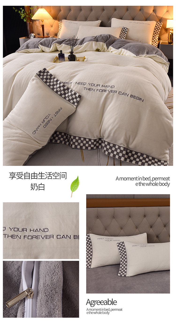 米奈 2024新款A类婴儿绒宽边四件套-贝利 奶白