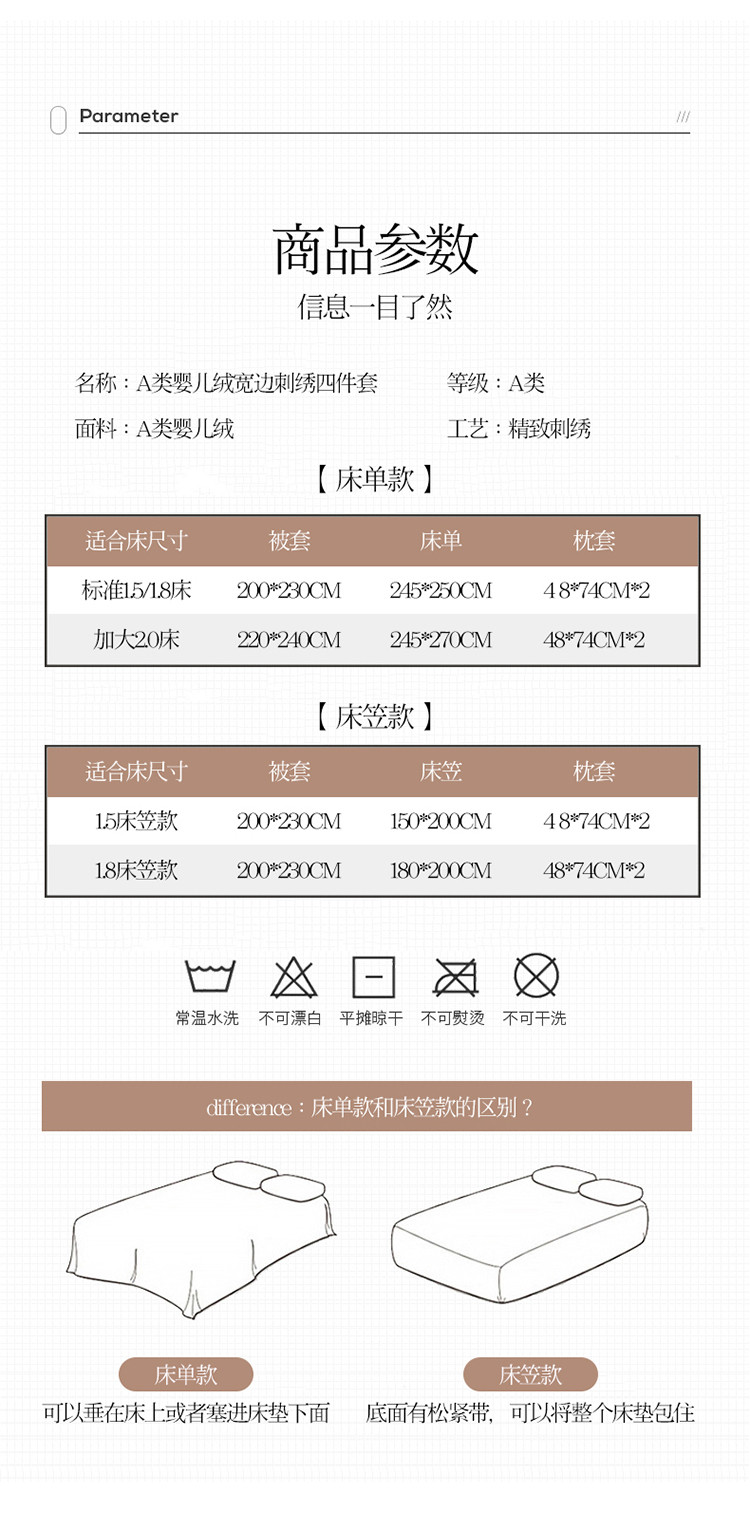(总)米奈家居 2025新款A类高克重婴儿绒四件套-吉娜系列,淡雅粉,豆沙绿,孔雀绿,奶昔白+浅灰,浅杏色,绅士灰,西瓜粉,芋泥紫