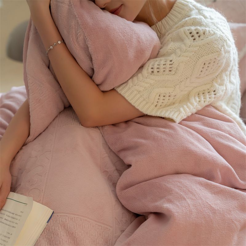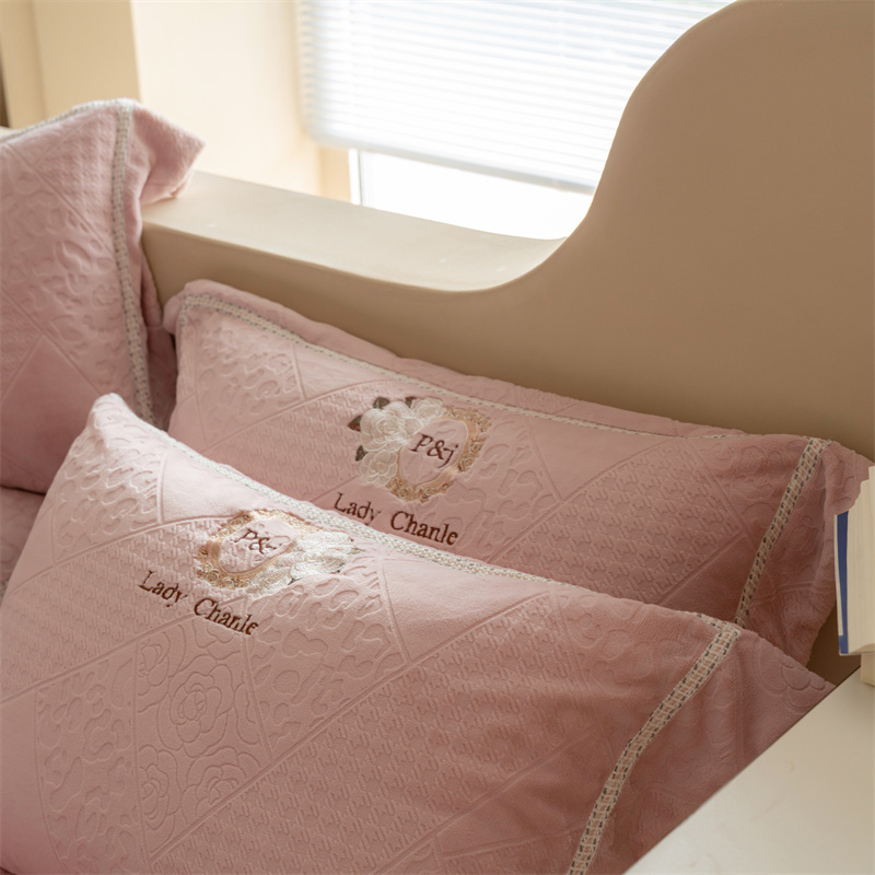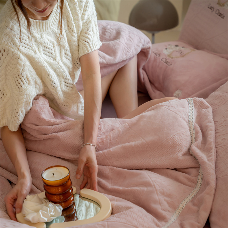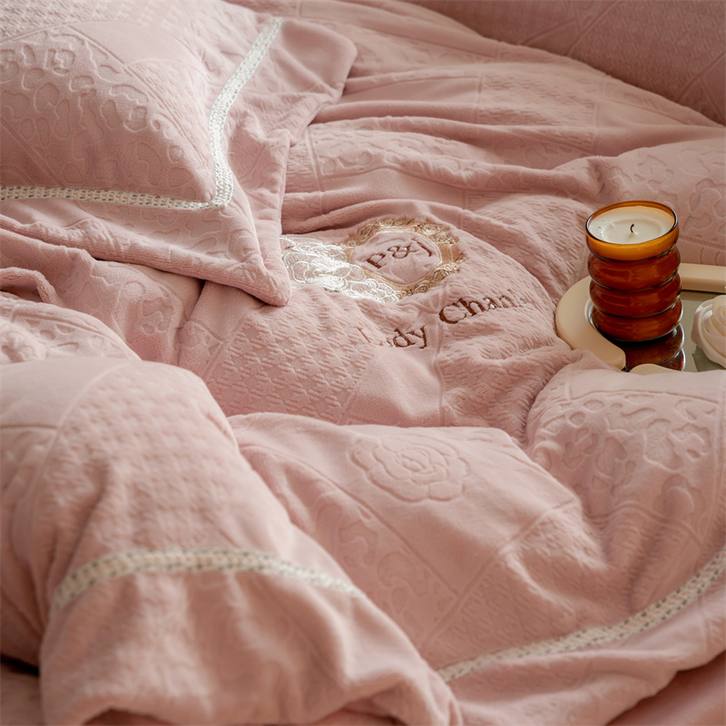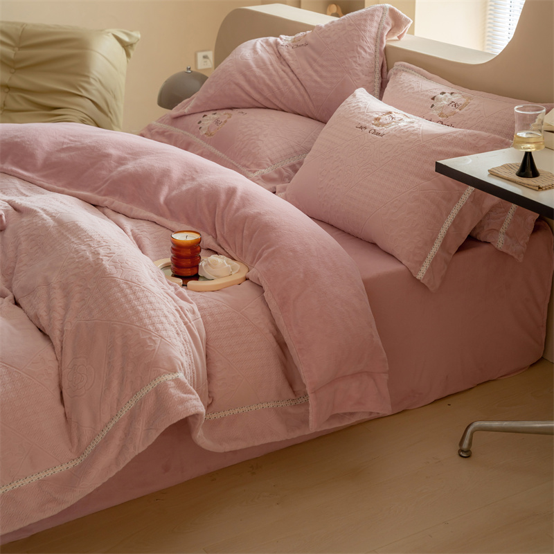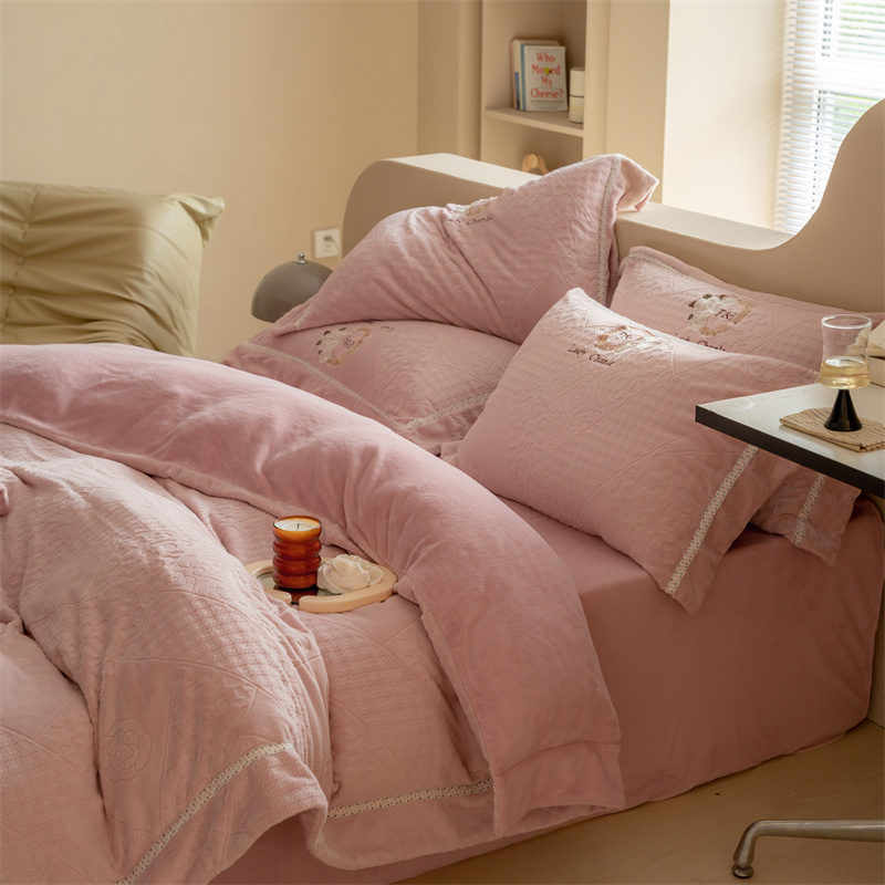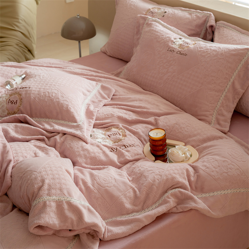 馨蕊家居 2022新款秋冬刺绣轻奢煦暖绒四件套-莫奈场景二 莫奈-蔷薇粉