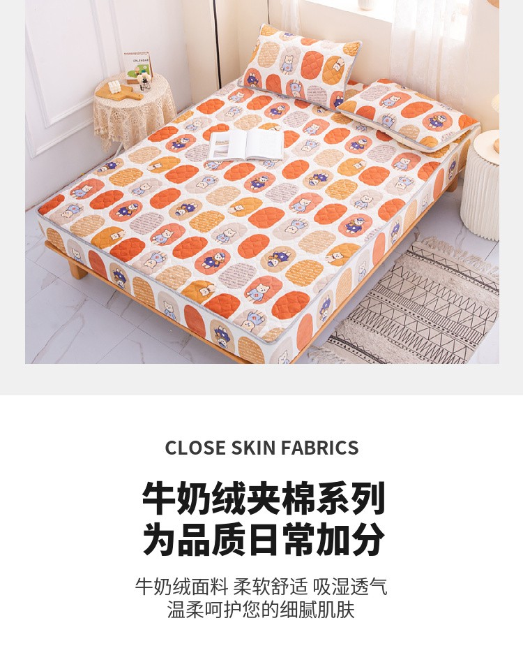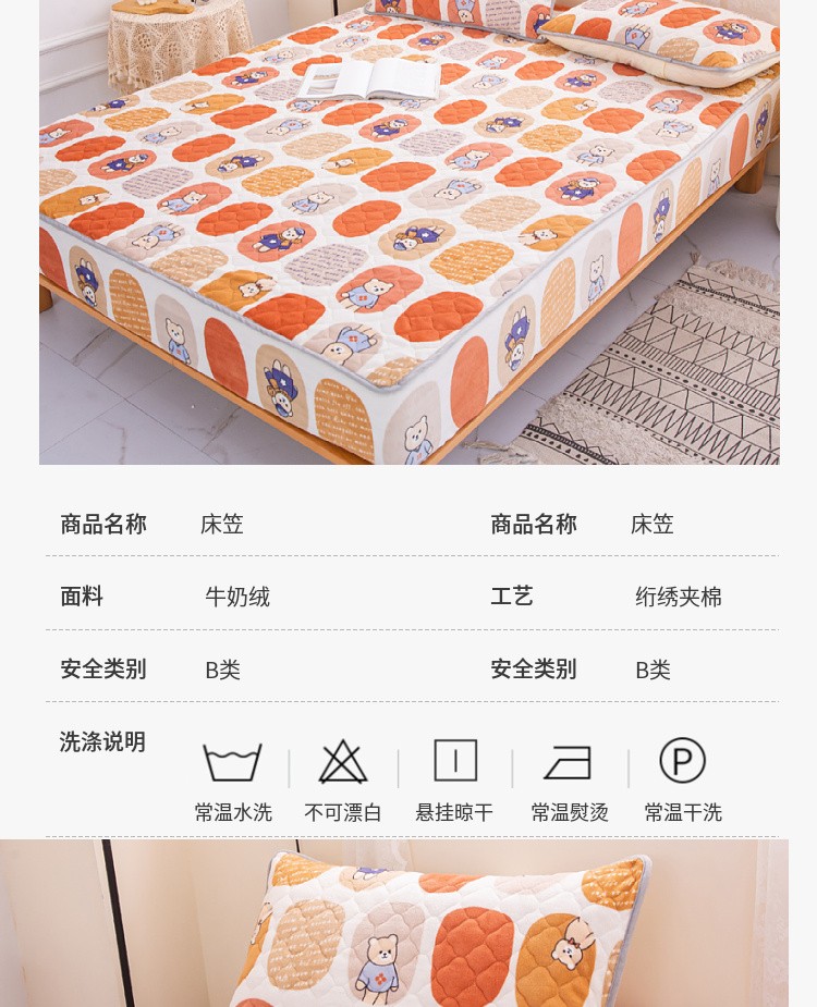 • 91家纺网 家纺一手货源 找家纺 小虾米 2022新款大床牛奶绒夹棉床笠 波点小熊