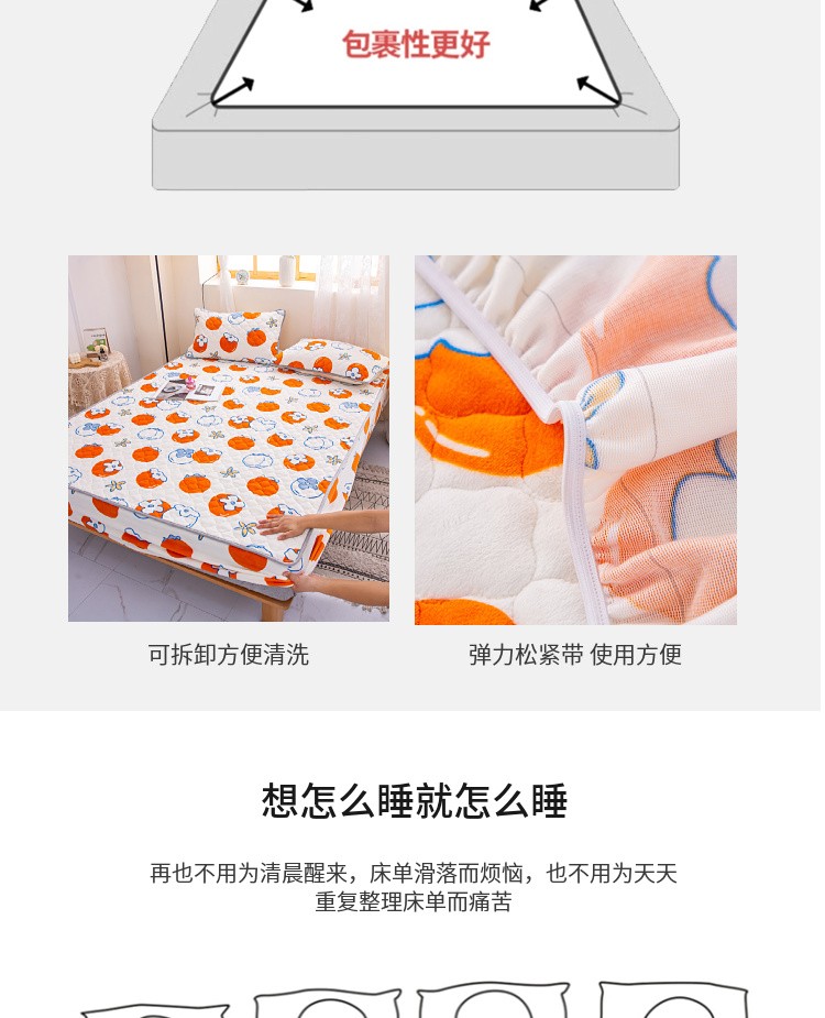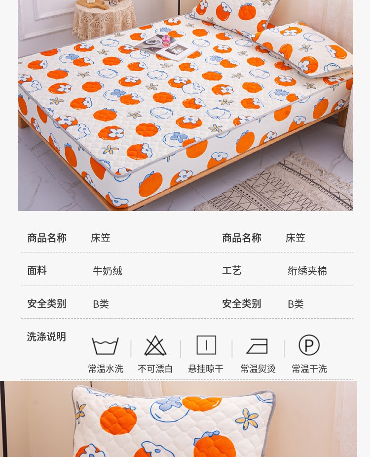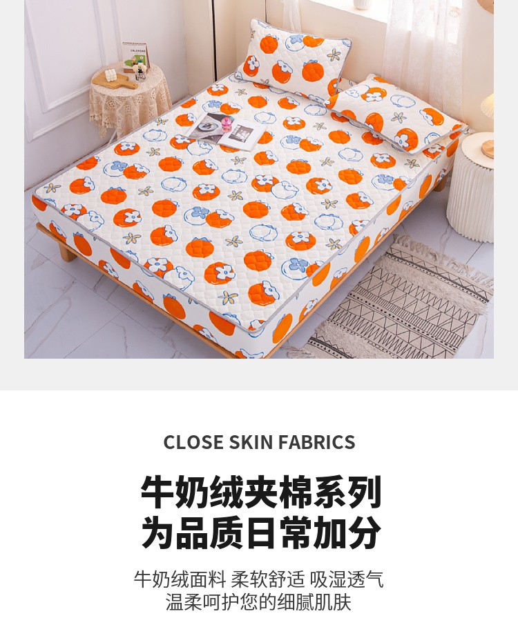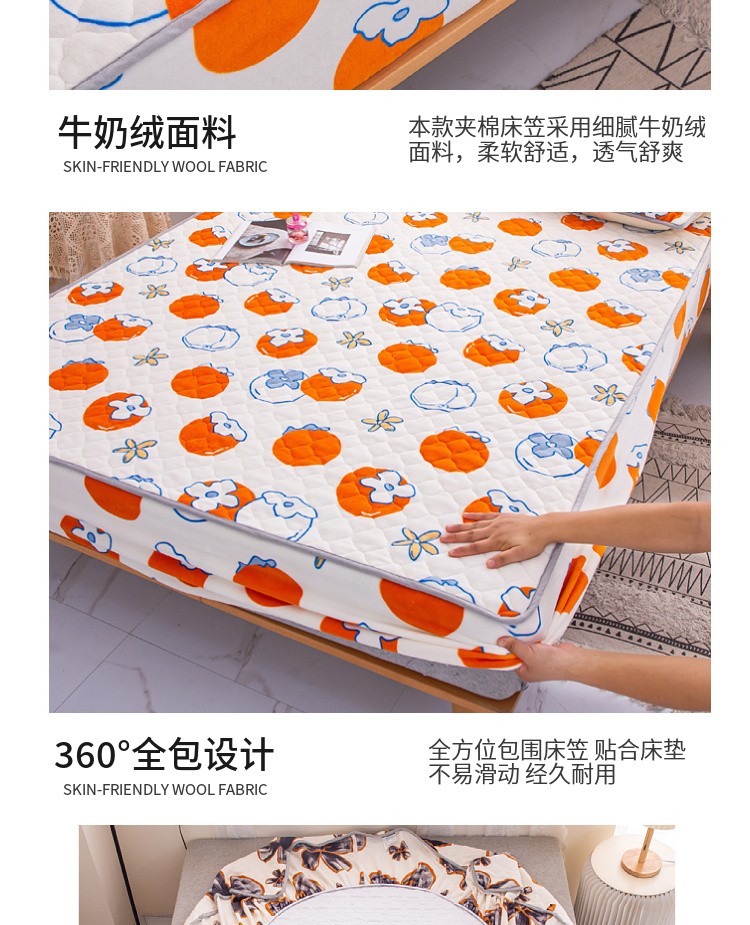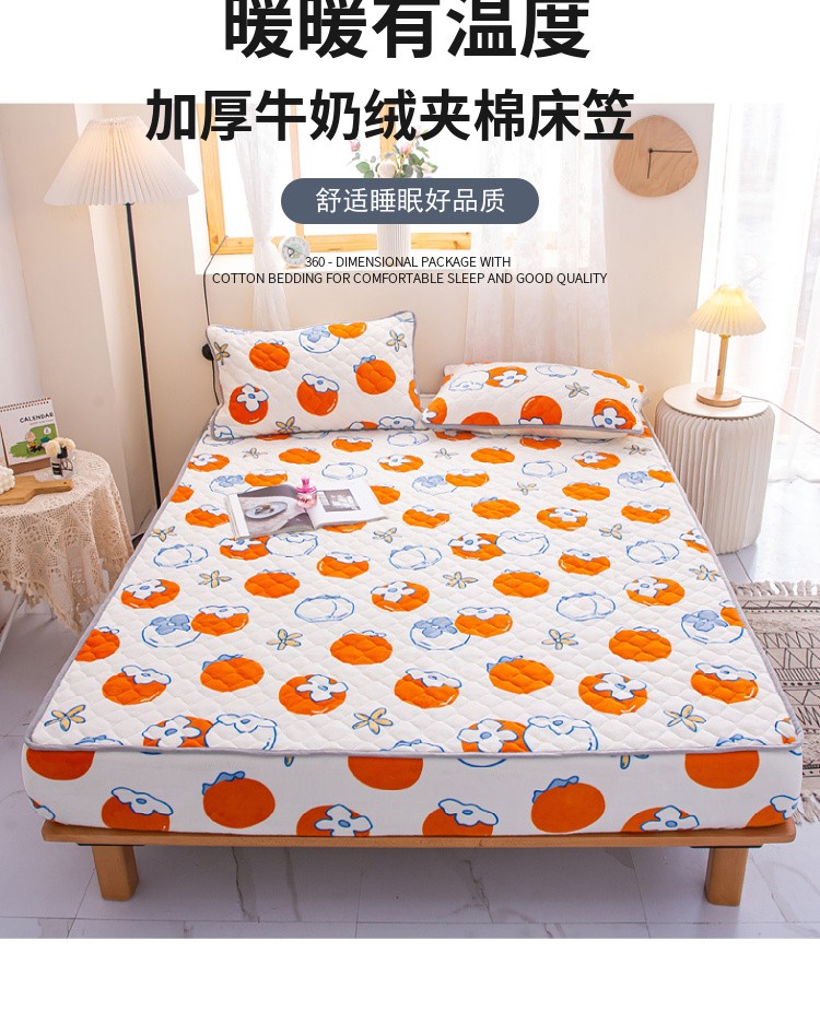 • 91家纺网 家纺一手货源 找家纺 小虾米 2022新款大床牛奶绒夹棉床笠 柿子