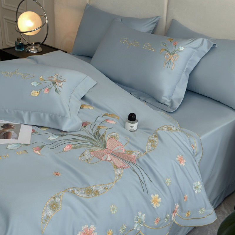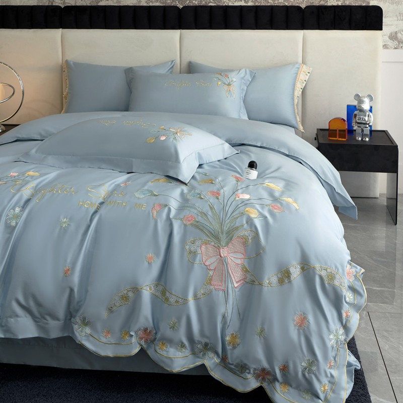 总宅家居 2024新款秘密花园系列轻奢小香风纯棉刺绣长绒棉四件套,秘密花园-初夏粉,秘密花园-梵星蓝,秘密花园-贵妃绿,秘密花园-奶昔白,秘密花园-香槟金