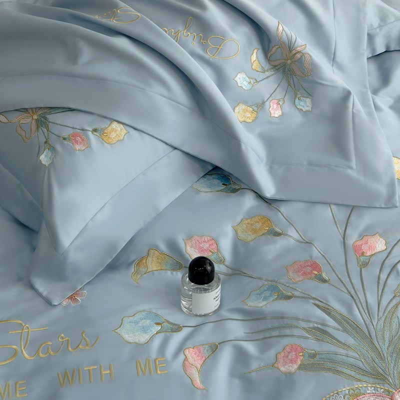 宅家居 马蹄莲-轻奢弯边刺绣小香风纯棉长绒棉 梵星蓝