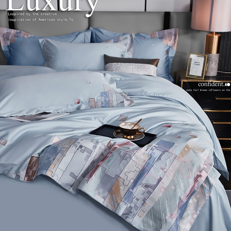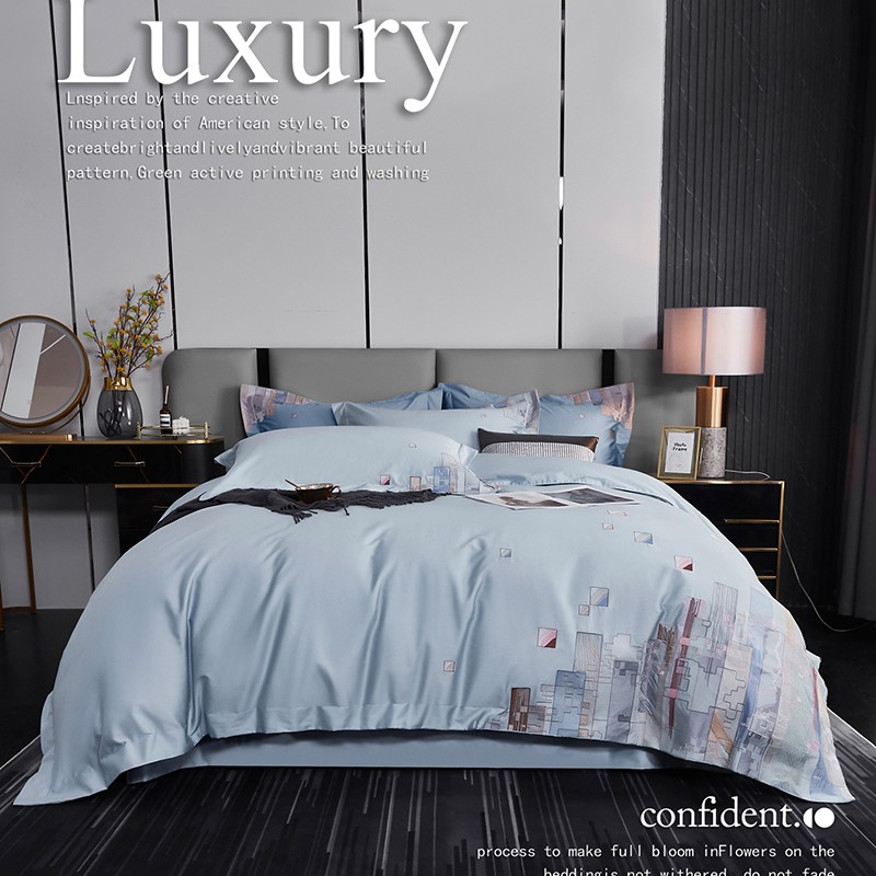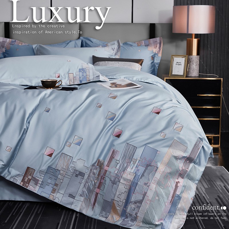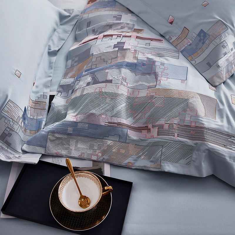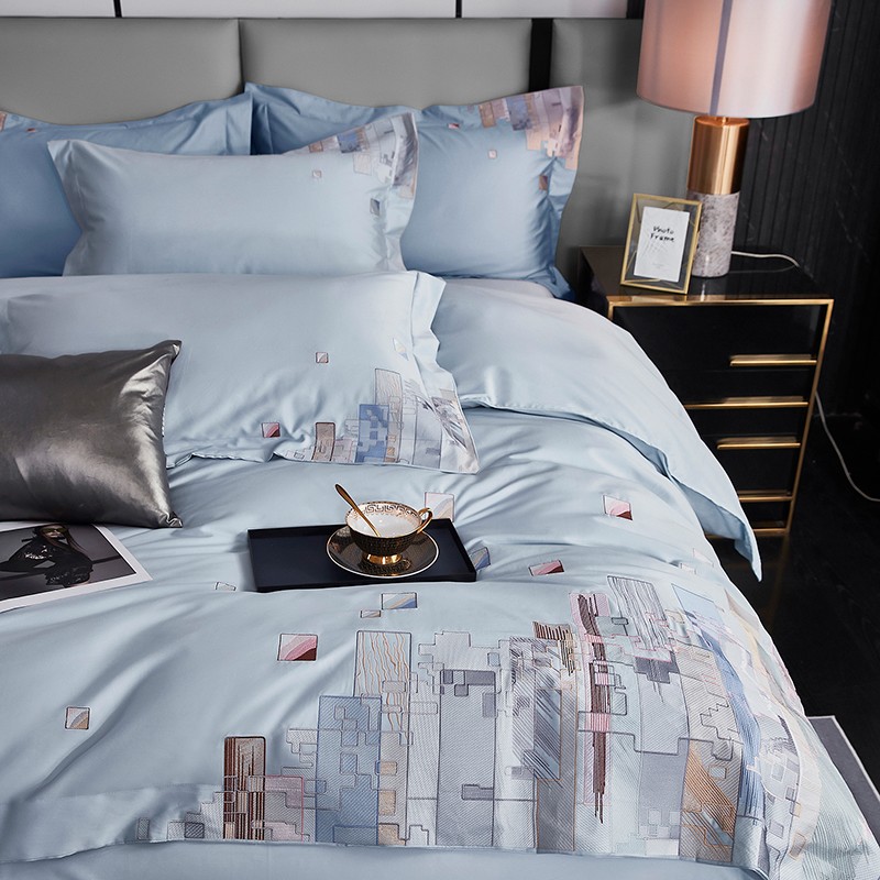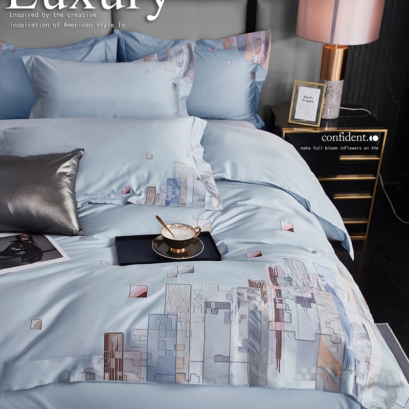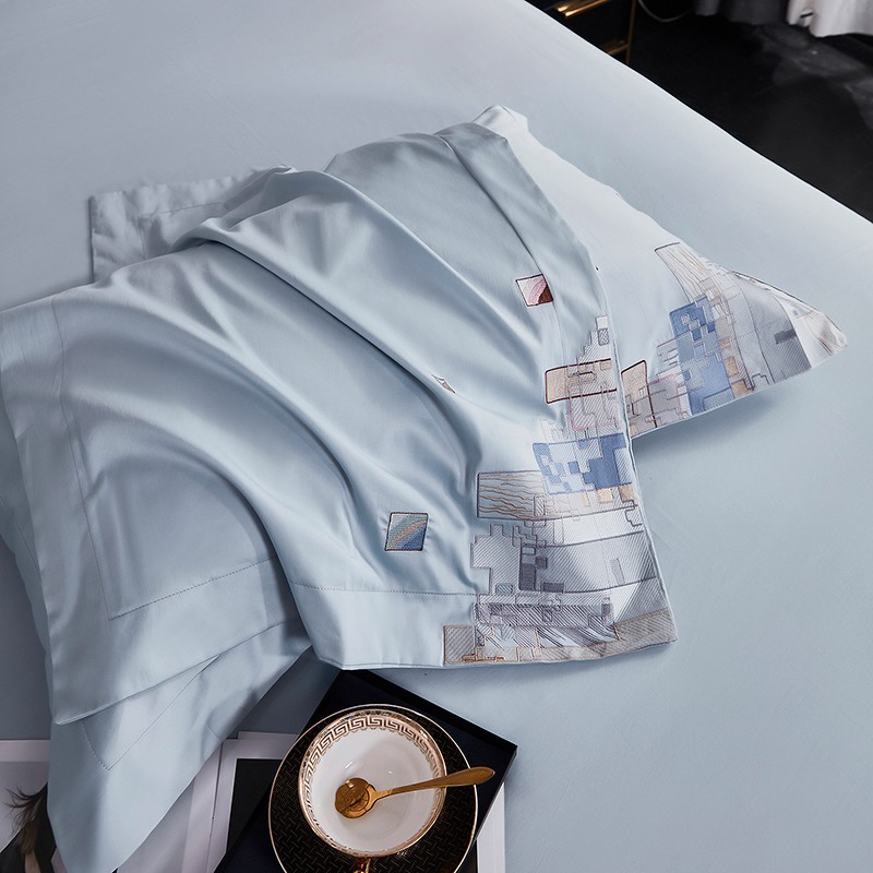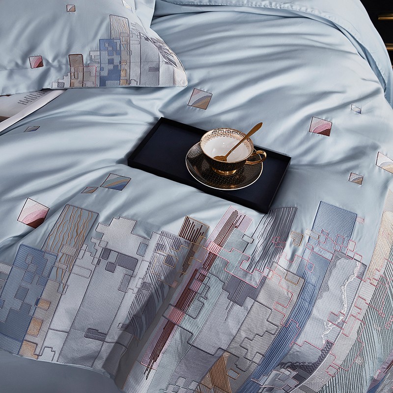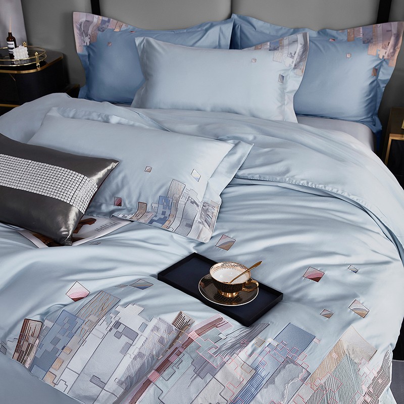 宅家居24新款180支阿克苏长绒棉刺绣全棉四件套-慕森湖水蓝