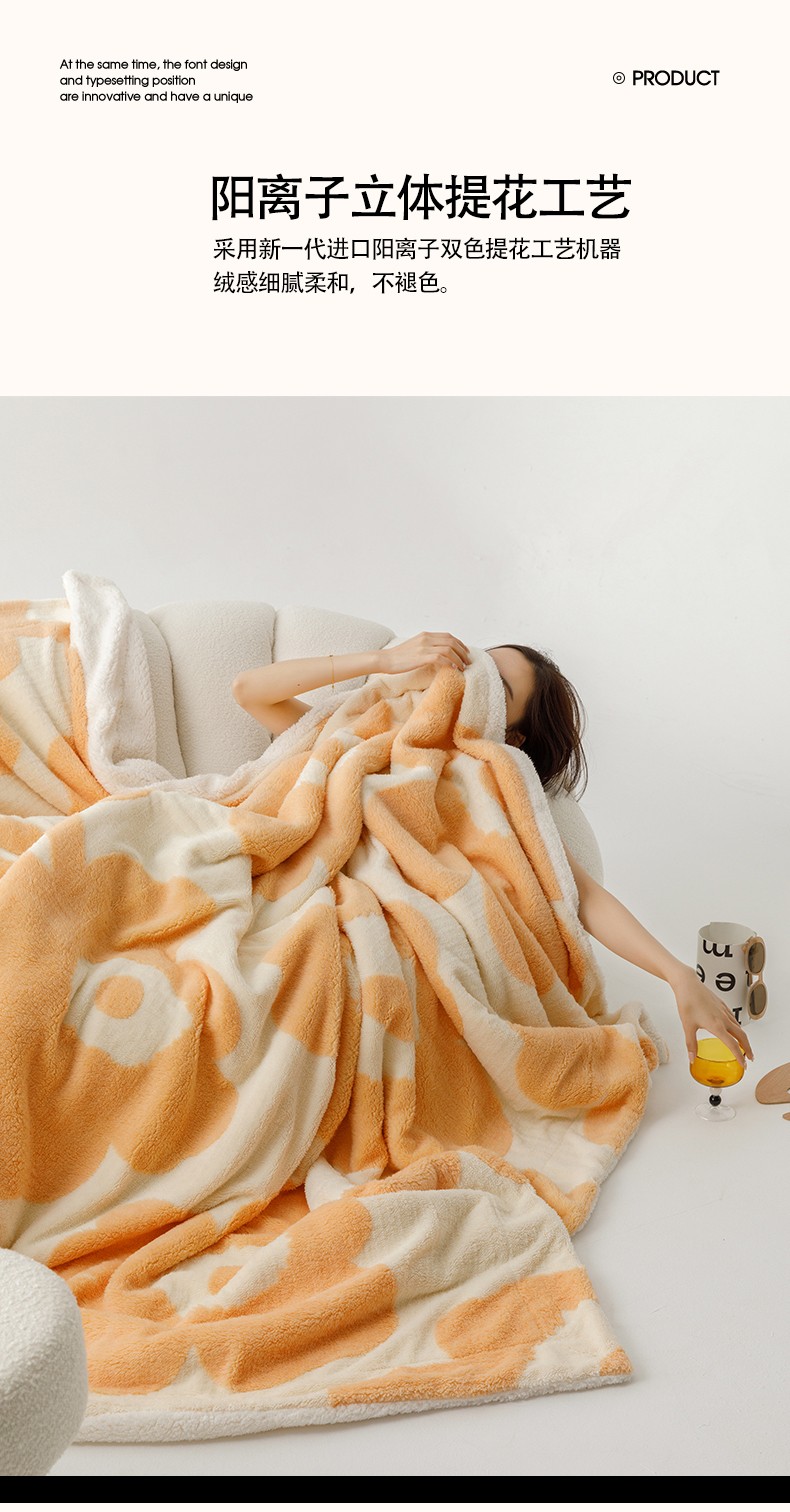 2022新升级加厚锦芙双层提花毯 暖暖浅橘,暖暖浅橘