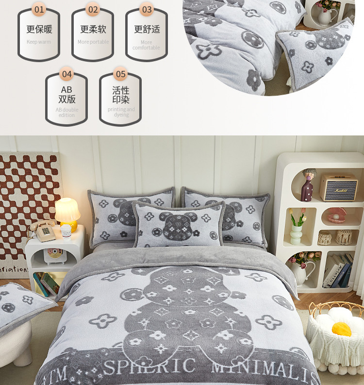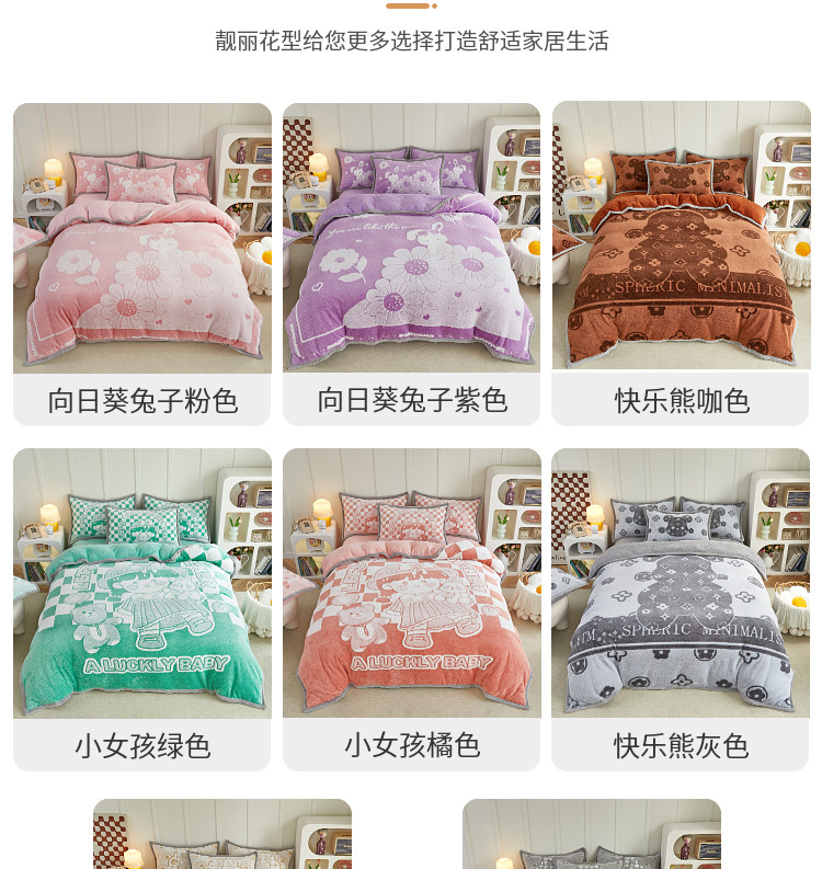 (总)丝羽坊 2025新款A类潮款加厚牛奶绒四件套,软萌宝贝,奶芙猫咪,蓝调汪汪,萌趣玩偶,灰调萌犬,抱抱熊,彩色蝴蝶结,粉粉喵窝,花裙女孩,紫色喵影