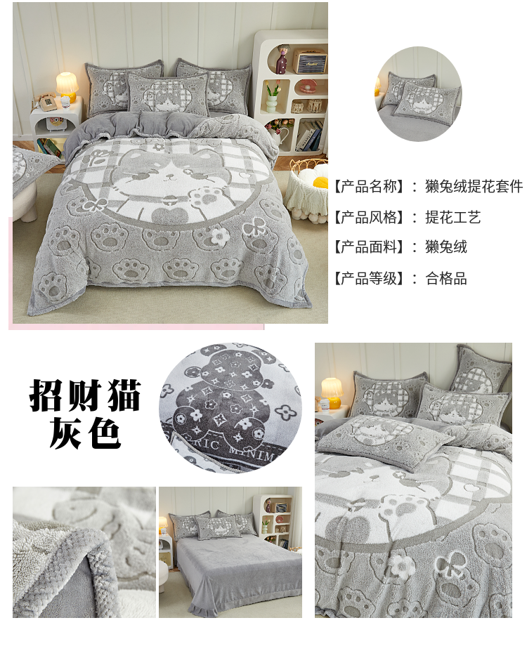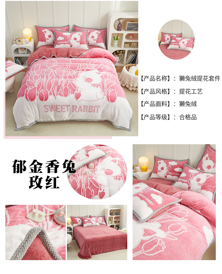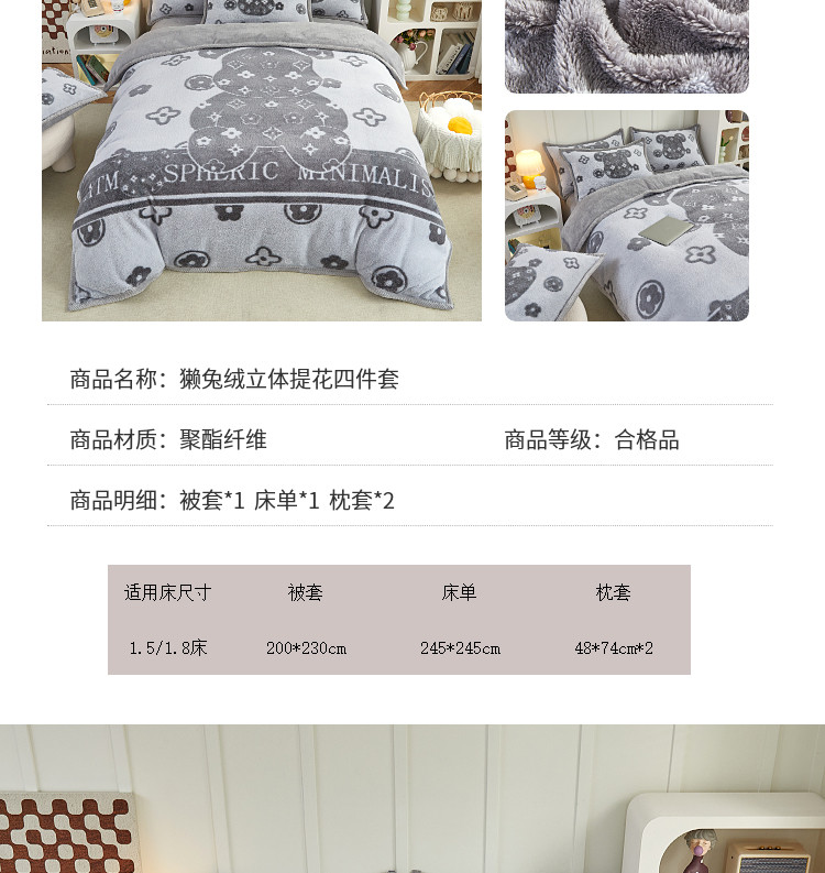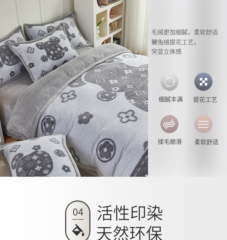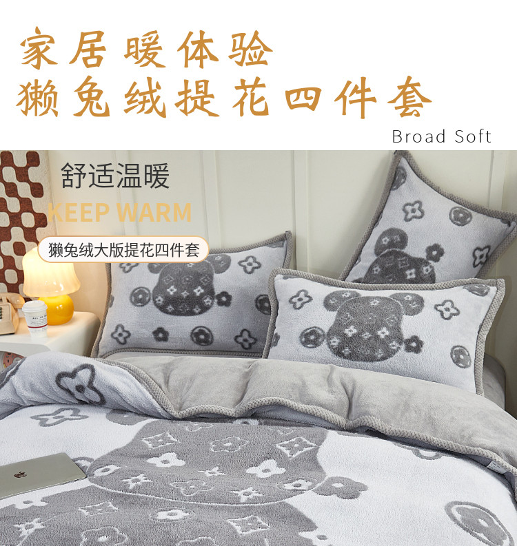 商品名称:(总)丝羽坊 2022新款獭兔绒大版提花四件套