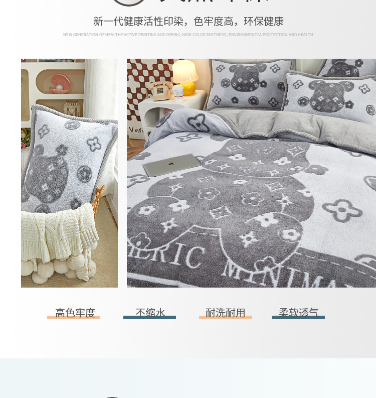 (总)丝羽坊 2022新款獭兔绒大版提花四件套